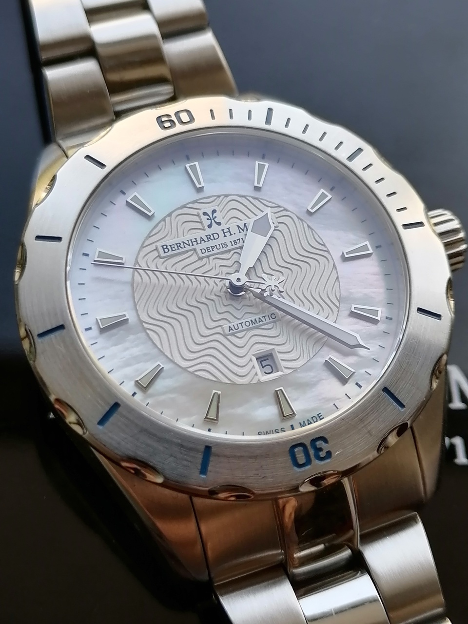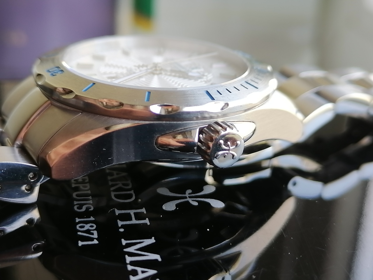 Корпус и большая часть браслета сатинированы, что очень практично и препятствует появлению следов эксплуатации.