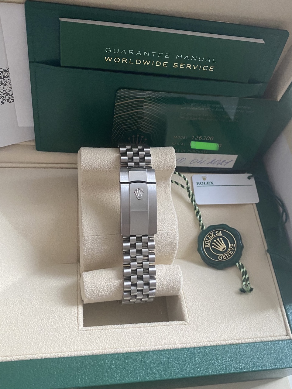 В продаже Rolex DJ 41 мм, model 126300, 2021 года, черный циферблат/юбилейный браслет. Мех.3235, запас хода 70 часов. Часы были куплены лично мной в бутике официального дилера Mercury в апреле 2021 г. в Москве. Самый полный комплект пакетов/коробок/подвесок/, документов с гарантийной картой нового образца, а также товарный и кассовый чеки о покупке на часы, официально ввезенные в Россию! На гарантии до апреля 2026 года.