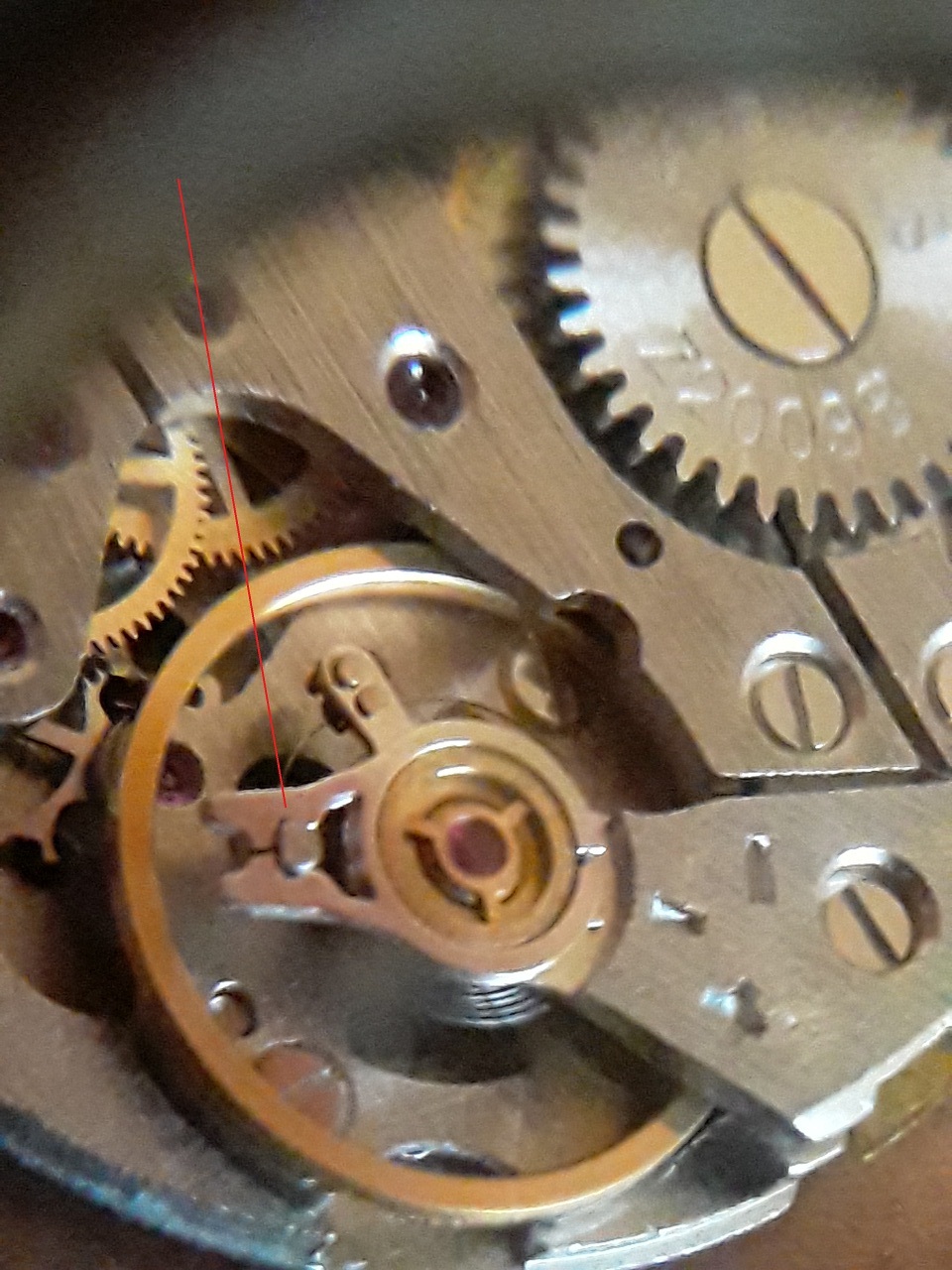 Собрал. Часы заводились буквально с полоборота. Снял баланс и видимо камнем не попал между рожков вилки. Идут только если часы качнуть. Подскажите, пожалуйста, можно ли двигая колонку выставить камень между рожков? Или нужно снова снимать баланс? На всякий случай фото чего собираюсь двигать.