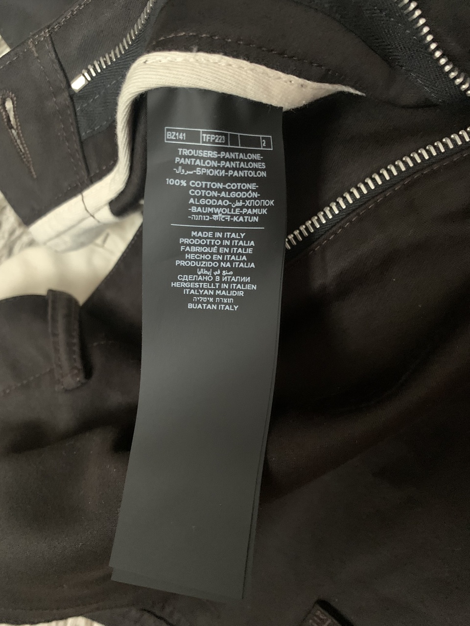 К созданию тёмно-коричневых карго Tom Ford подошёл с максимальным вниманием к комфорту.Модель выполнили так,чтобы она повторяла силуэт тела:за это отвечают защипы в области коленей.Заниженная линия шага не сковывает движения,а мягкий плотный хлопок не перегревает тело.