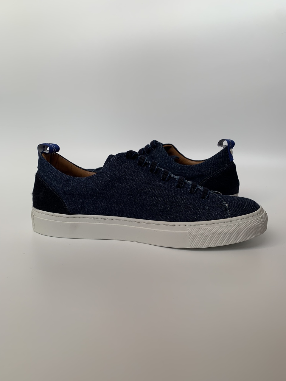 Сочетание новых изысканных материалов определяет лаконичный стиль сникеров JACOB COHËN.Неоднородный и размытый вид хлопкового денима сочетается с насыщенной текстурой ворса пони,создавая небольшой контраст текстур на заднике в тон изделию.Хлопковый деним напоминает о типичных материалах сезона:в самом деле,ткань позаимствована из линейки мужской одежды.Она обрабатывается специальным образом для использования также при изготовлении аксессуаров.Плоская резиновая подошва из лёгкого и гибкого материала белого цвета сбоку украшена логотипом марки,что делает обувь узнаваемой.Модель синего цвета с закруглённым носком имеет шнуровку спереди и петлю для подтягивания сзади.Фирменная стелька и подкладка из кожи завершают эту модель обуви и обеспечивают комфорт при носке.