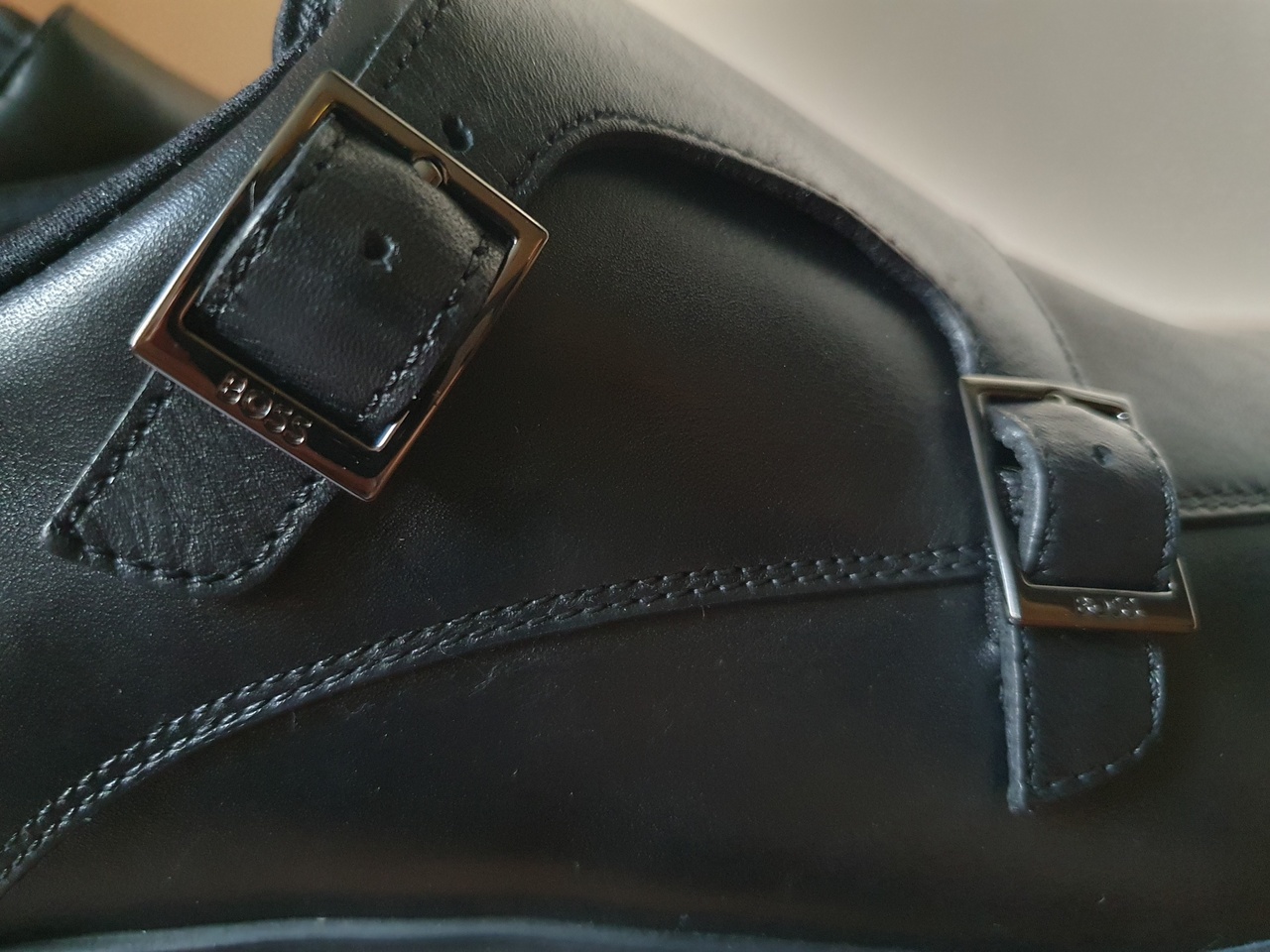Шикарные туфли дабл-монки из 100% дубленой кожи с тиснением, насыщенного чёрного цвета!Подошва из резины-подойдут для межсезонья.Пряжки с логотипом Boss. В области пятки тиснением выполнен логотип Boss. C боков туфель внутри расположены эластичные вставки, благодаря которым туфли надеваются и снимаются как слипоны, без необходимости что-либо расстегивать и застёгивать. Также, благодаря этим эластичным вставкам, обувь может подойти на ногу с подъемом выше среднего.