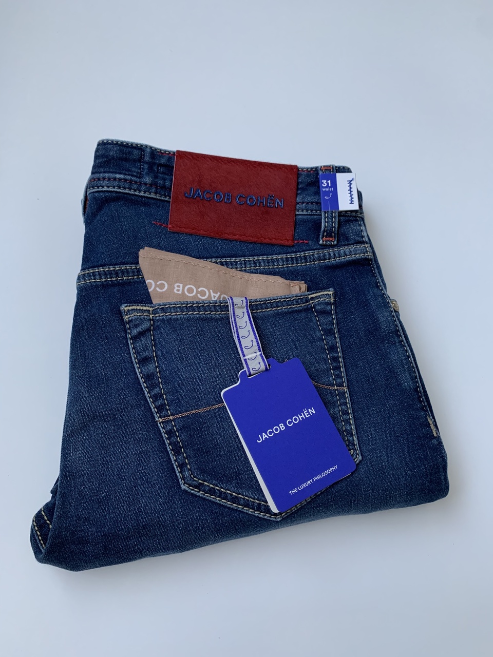 JACOB COHËN новые мужские джинсы синего цвета с потёртостями (31 size)