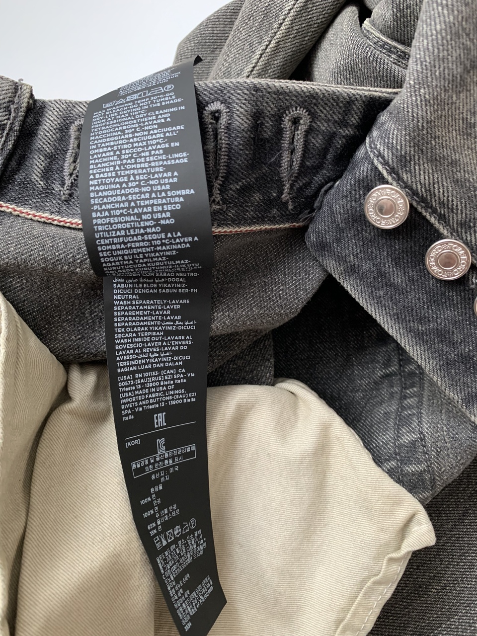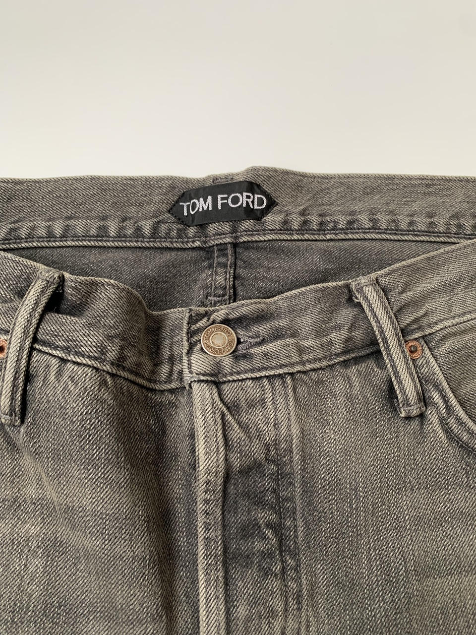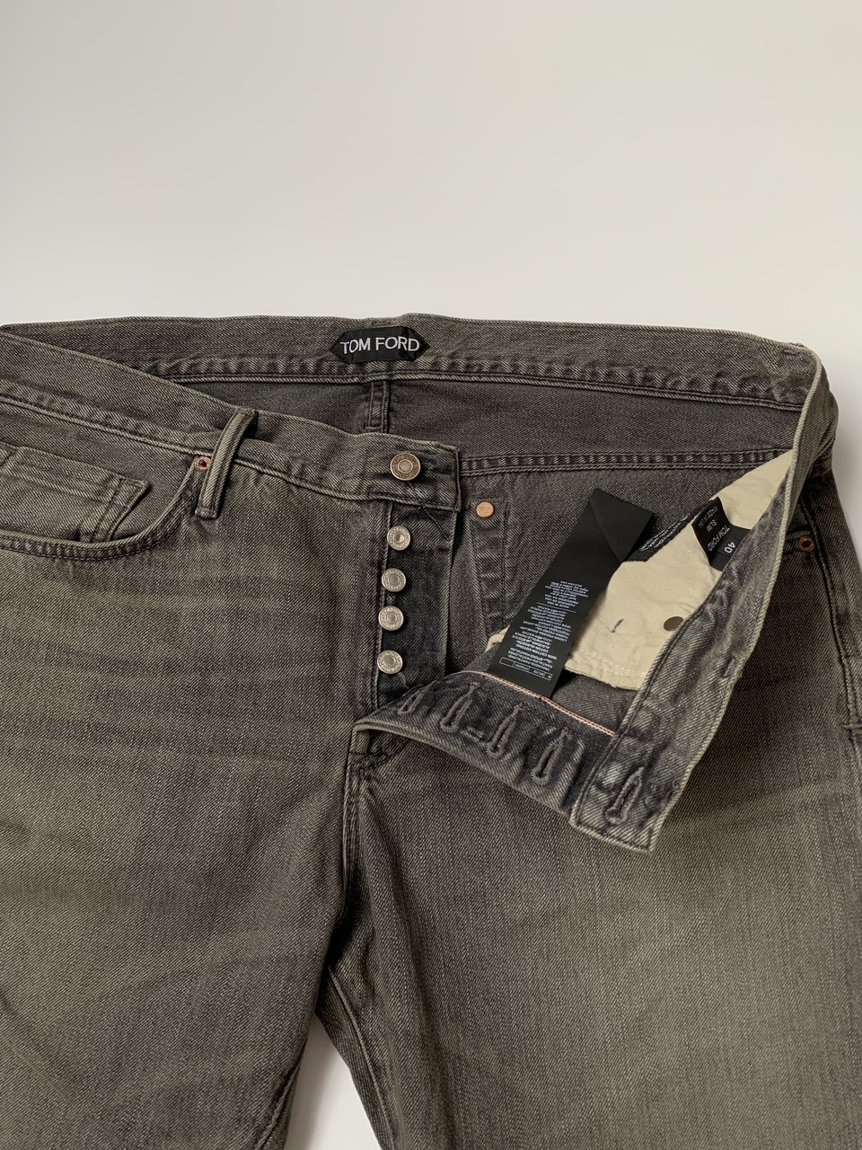 TOM FORD новые мужские джинсы Japanese Selvedge Denim серого цвета с потёртостями Slim-fit (40 size)