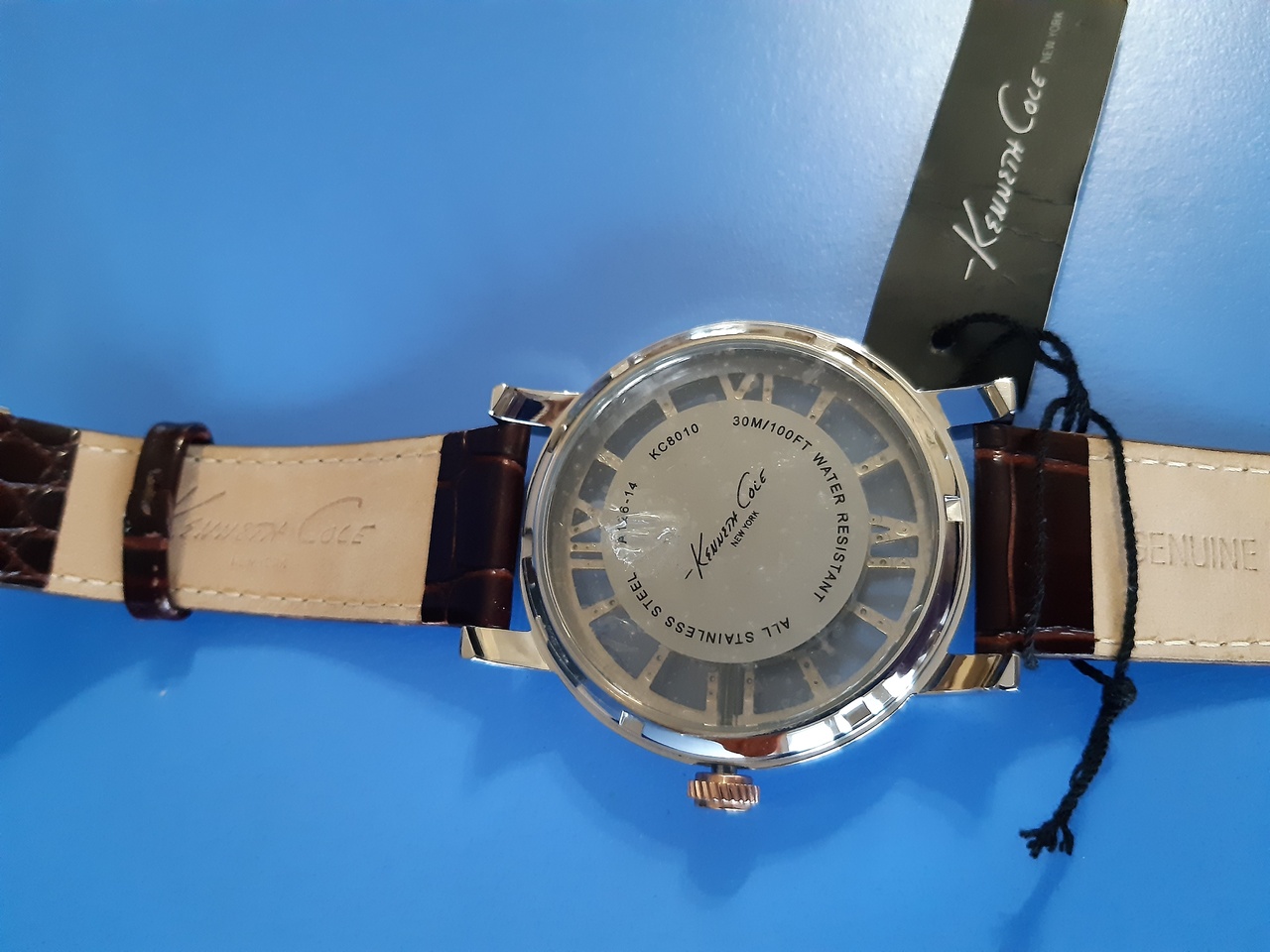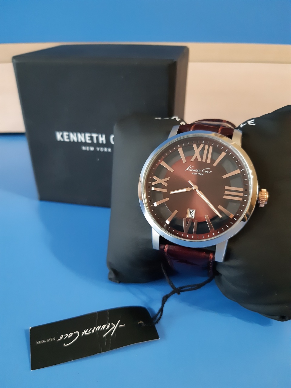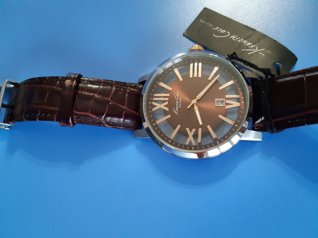 Предлагаю к продаже новый строгий трехстрелочник Kenneth Cole серии Transporent. Модель IKC8010. Крупный стальной корпус, полупрозрачный цифер коричневого цвета. Из-за прозрачных элементов цифера на руке не выглядит очень большими. Состояние часов и ремешка – новые, на задней крышке пленка. В разделе б/у, т.к. лежали у меня пару лет. Корпус имеет размер 46 мм, толщина - 9 мм. Ширина ремешка 22мм, длина - 200мм. Механизм кварцевый Miyota. WR 3bar.