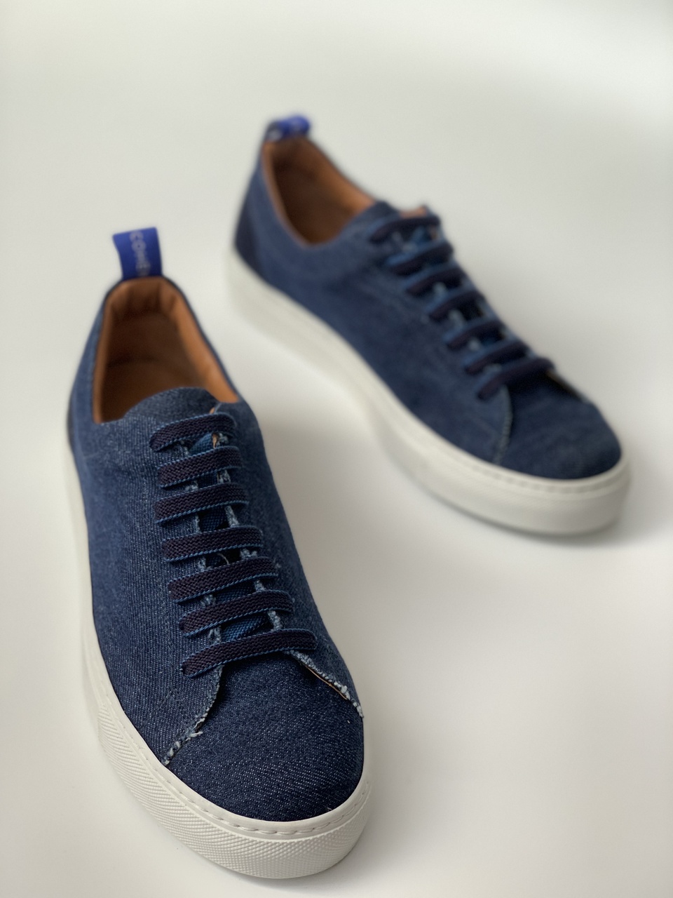 Сочетание новых изысканных материалов определяет лаконичный стиль сникеров JACOB COHËN.Неоднородный и размытый вид хлопкового денима сочетается с насыщенной текстурой ворса пони,создавая небольшой контраст текстур на заднике в тон изделию.Хлопковый деним напоминает о типичных материалах сезона:в самом деле,ткань позаимствована из линейки мужской одежды.Она обрабатывается специальным образом для использования также при изготовлении аксессуаров.Плоская резиновая подошва из лёгкого и гибкого материала белого цвета сбоку украшена логотипом марки,что делает обувь узнаваемой.Модель синего цвета с закруглённым носком имеет шнуровку спереди и петлю для подтягивания сзади.Фирменная стелька и подкладка из кожи завершают эту модель обуви и обеспечивают комфорт при носке.
