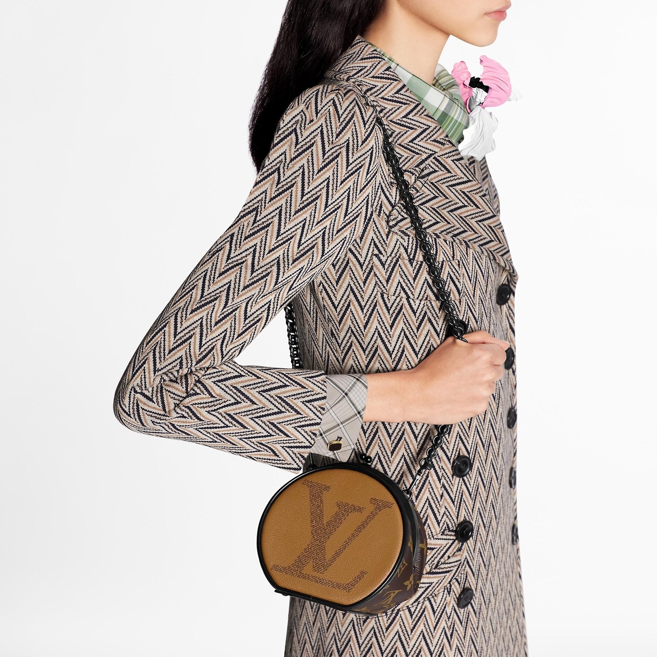 Дизайн линейки сумок Boite Chapeau вдохновлен формой шляпных коробок из коллекции классического исторического багажа LV. Сумки Boite Chapeau в такой характерной округлой форме стали хитом LV, и выпускаются сейчас в разных материалах и размерах.