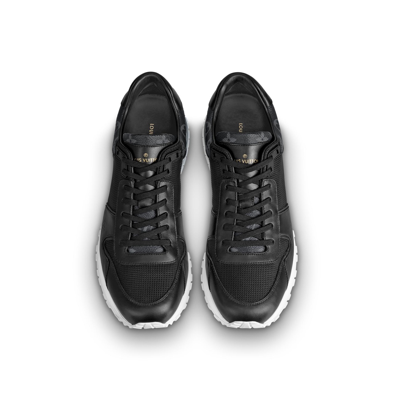 "Легендарные кроссовки Run Away, изготовленные из роскошного сочетания канвы Monogram, кожи телёнка и текстиля, созданы в лаконичной цветовой гамме. Модель, представляющая собой новую интерпретацию классической спортивной обуви, дополнена подошвой из каучука и искусной отделкой ручной работы. Вышивка в виде инициалов LV завершает эксклюзивный дизайн."