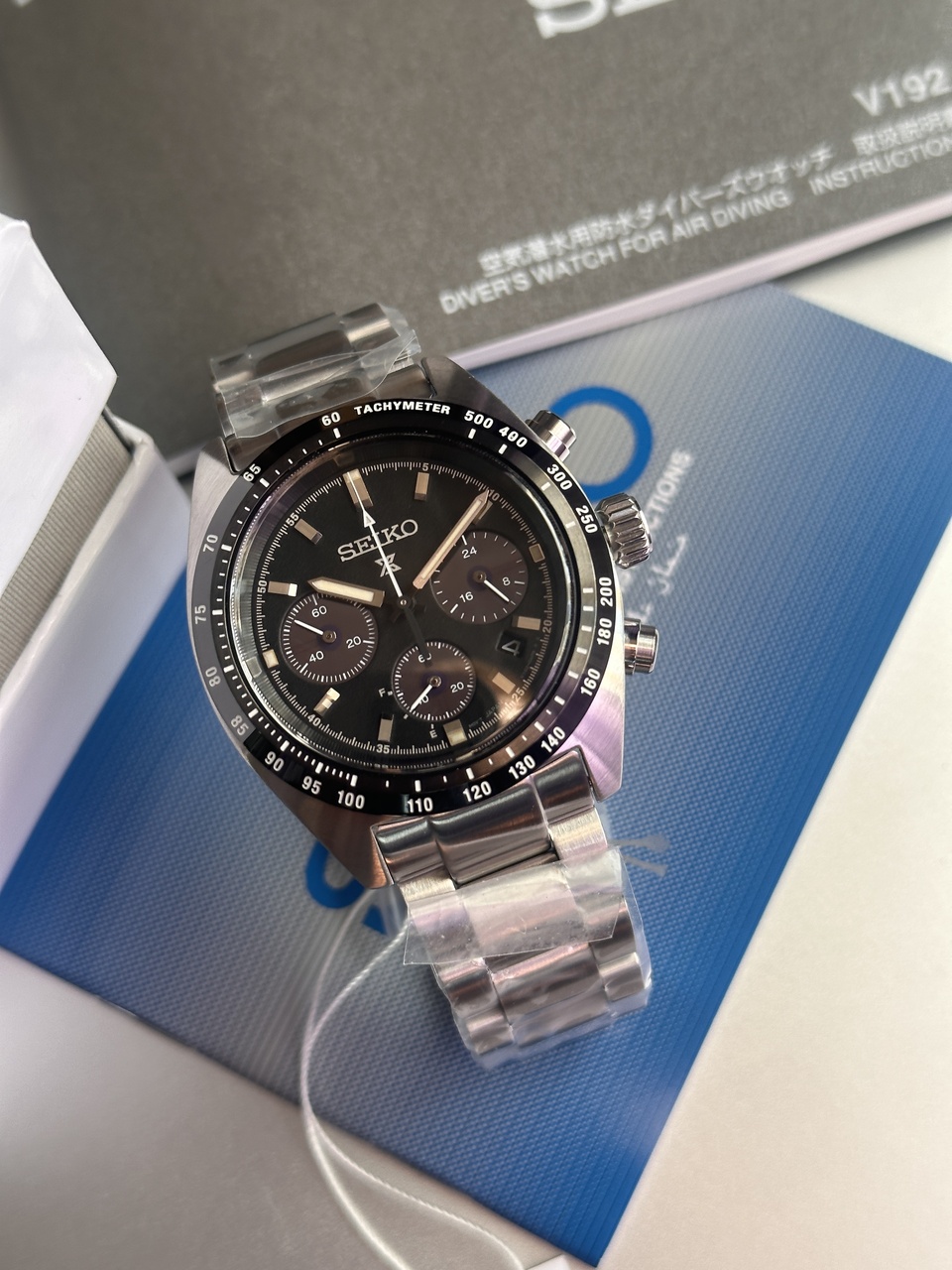 SEIKO SPEEDTIMER SSC819P1 ХРОНОГРАФ, ЧЁРНЫЙ ЦИФЕРБЛАТ, SOLAR, БРАСЛЕТ
