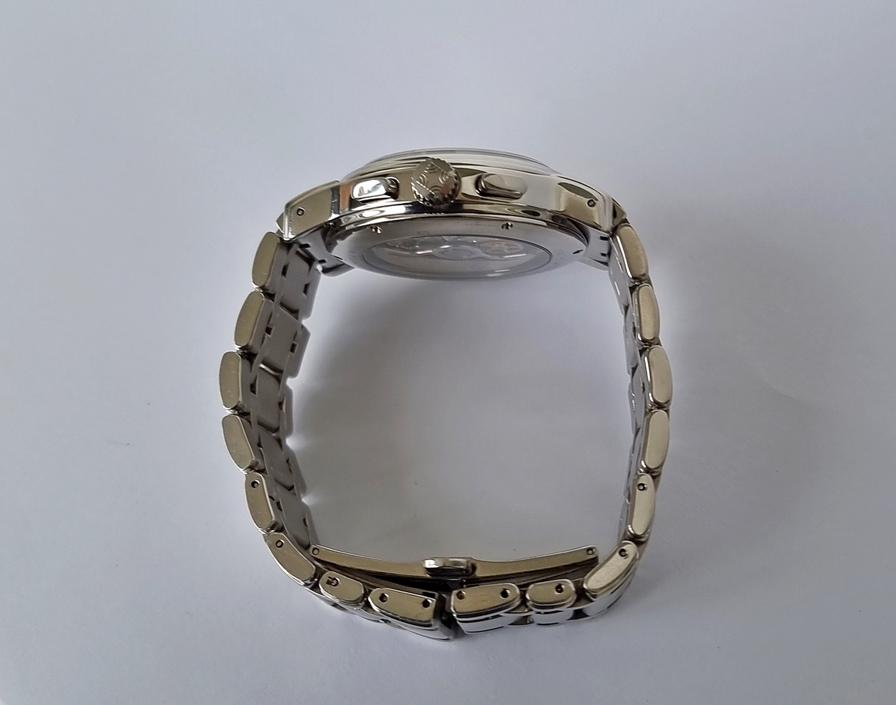 Функции: часы, минуты, секунды, хронограф, дата, день недели, месяц, тахометрическая шкала, индикатор фазы луны