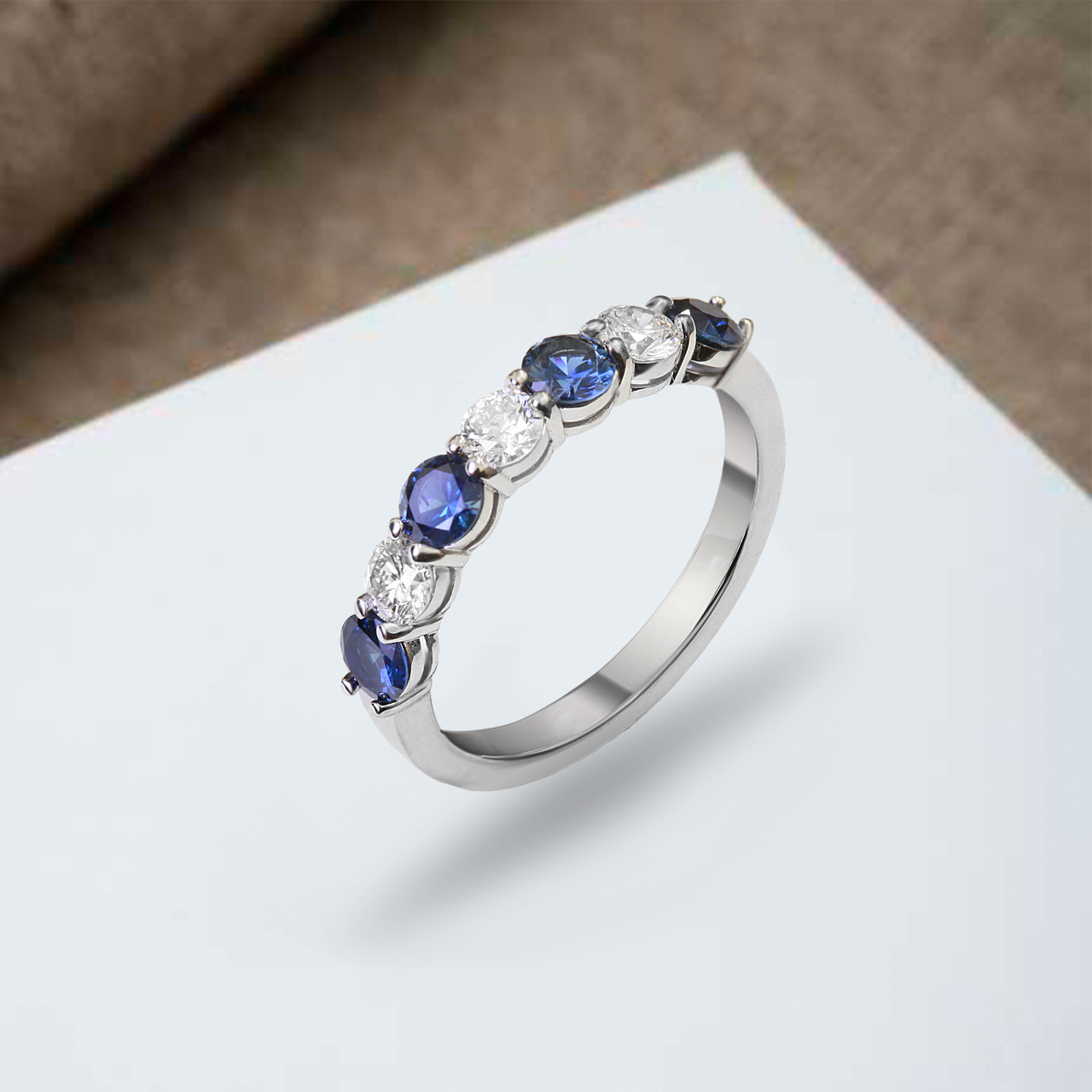 Кольцо из белого золота с сапфирами 0,66 карат и бриллиантами 0,35 карат (сертификат МГЦ)