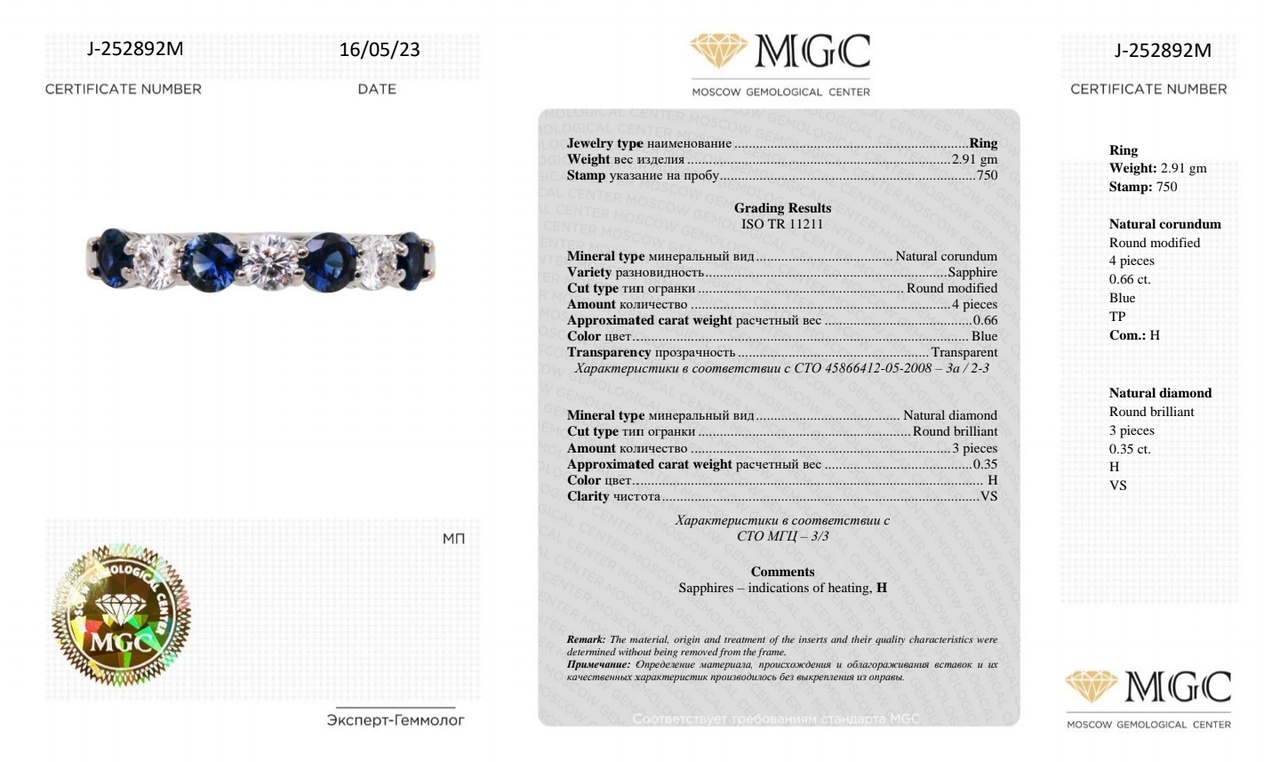 Сапфиры общим весом 0,66 карат, природные, метод облагораживания - нагрев