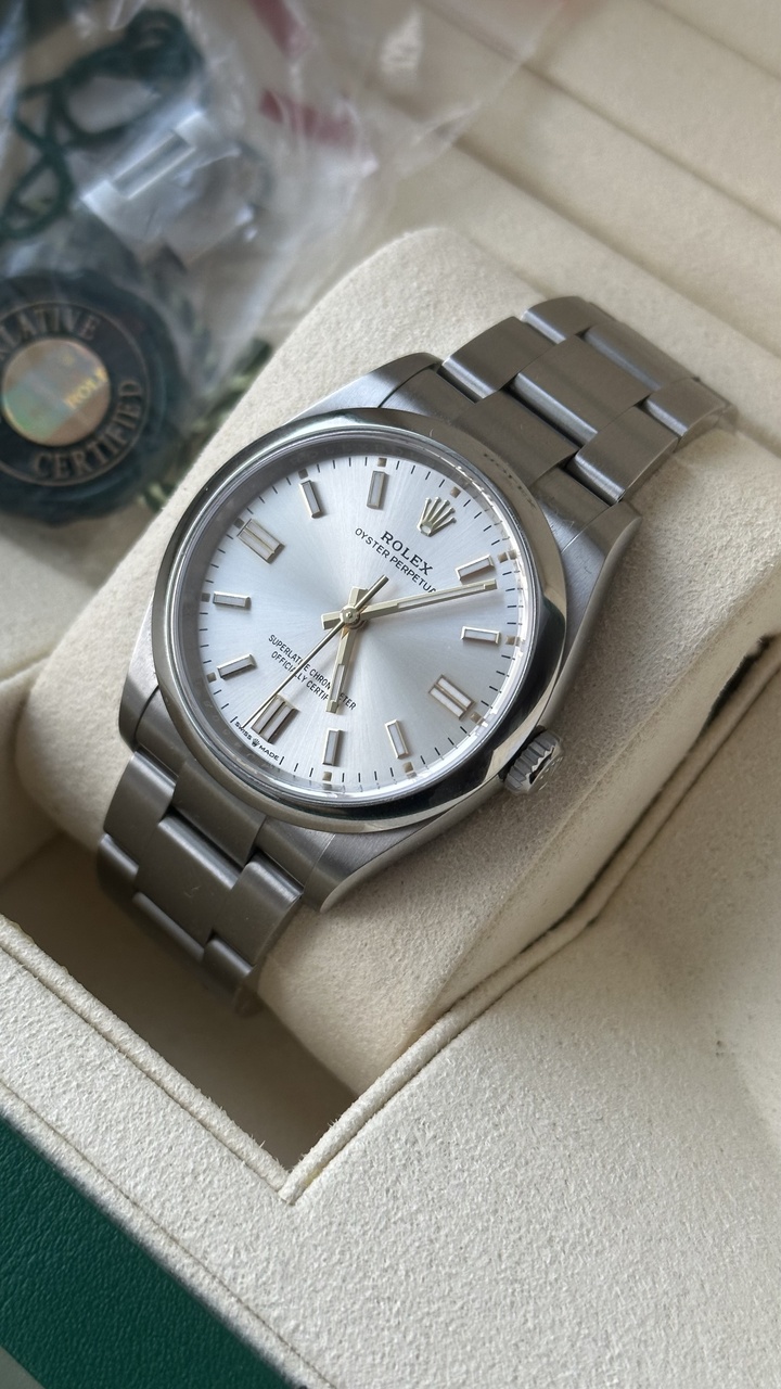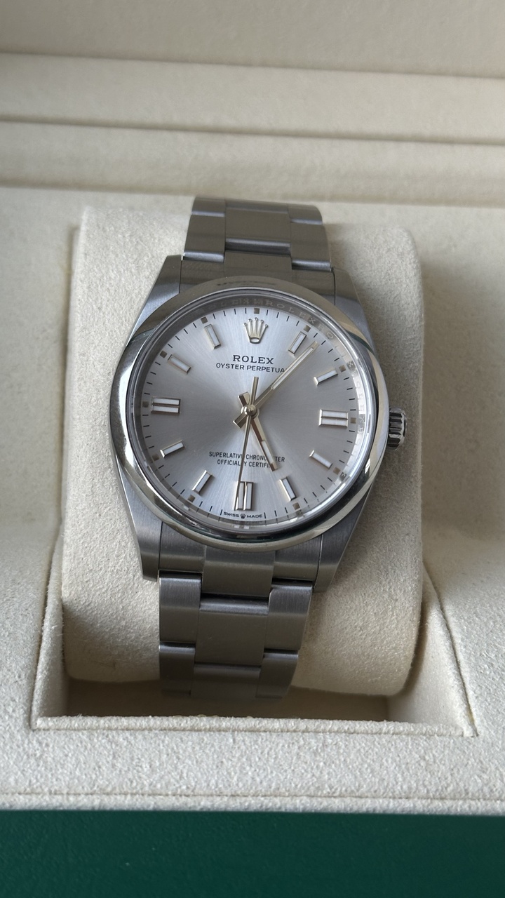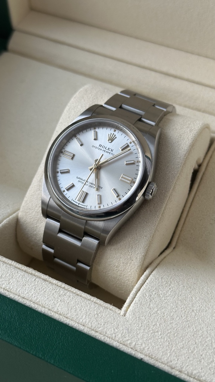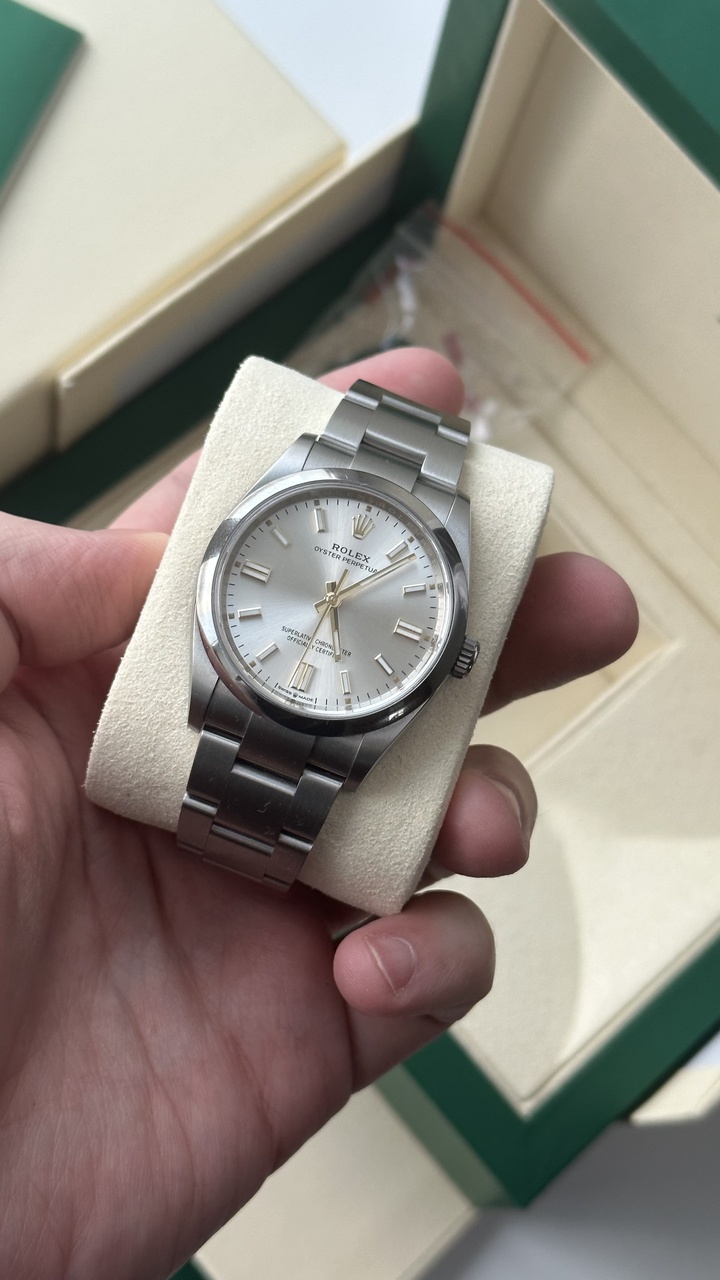Универсальный Ролекс 36 мм 126000. Состояние очень хорошее. Плёнки были сняты в октябре 2022 года. Часы не единственные в коллекции, поэтому носились не каждый день.