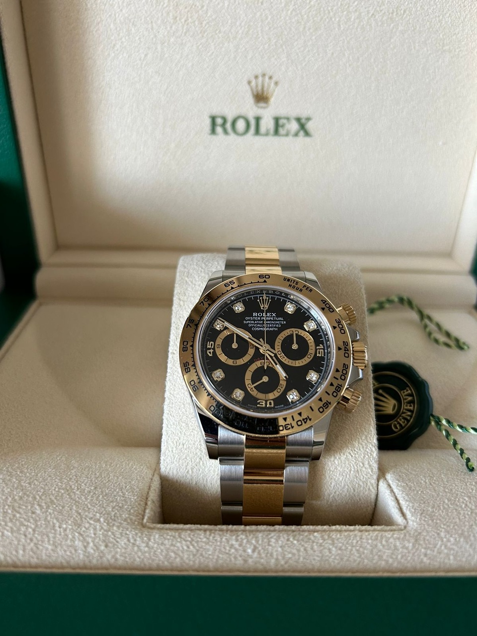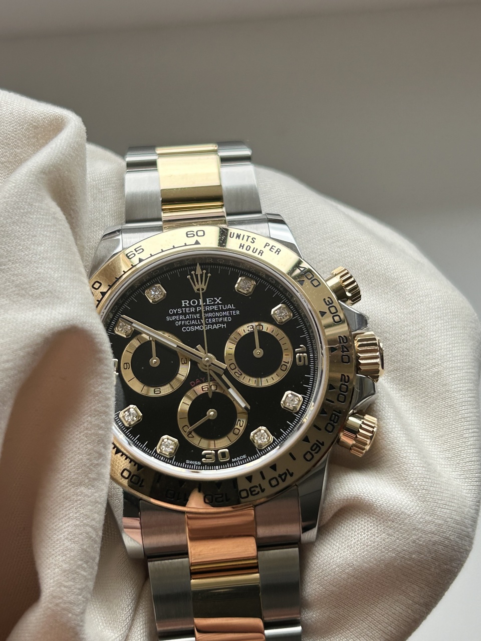 Rolex Daytona Биколор черные с бриллиантовыми метками