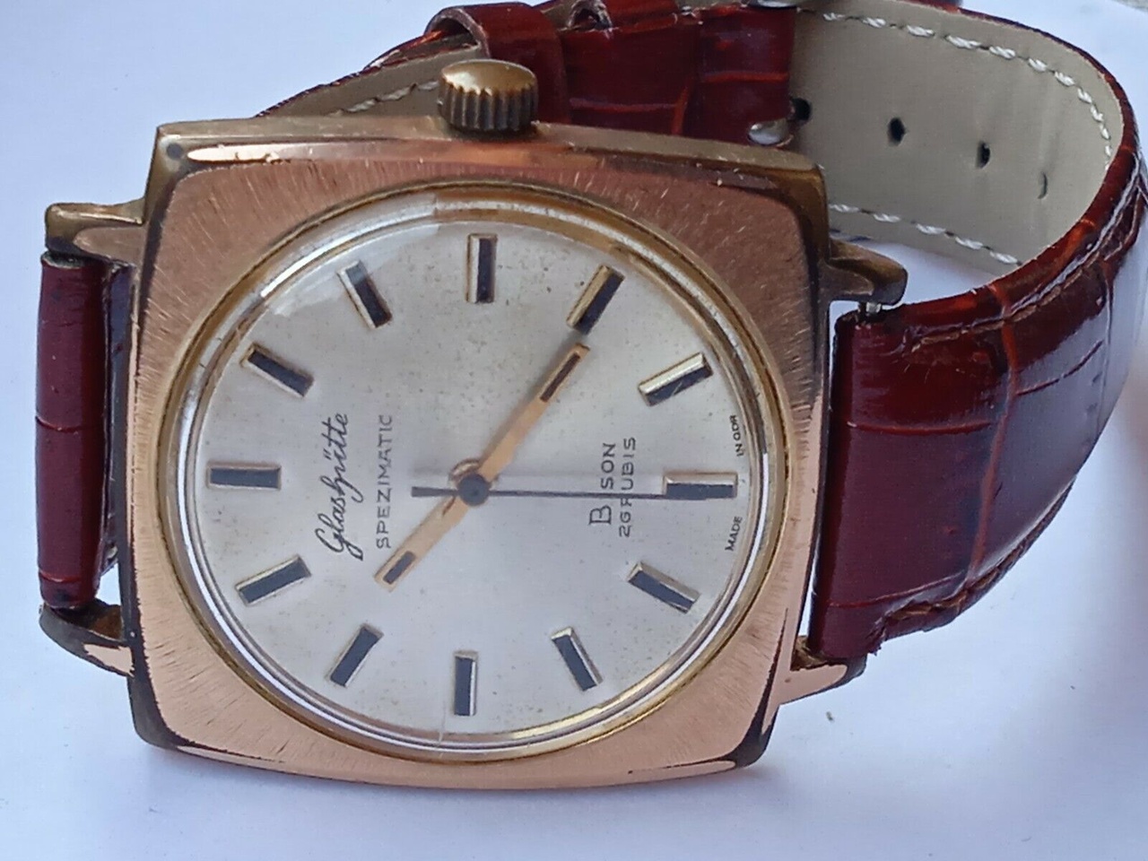 Позолоченные Glashutte Bison в золотом исполнении, 26 камней.
