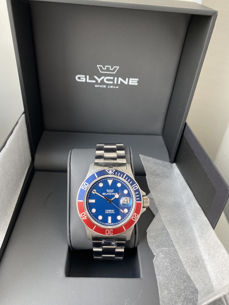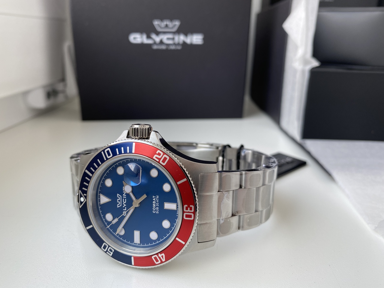 200 м водоустойчивость, циферблат с накладными цифрами по плоским сапфиром с антибликовым покрытием, идеальный размер.