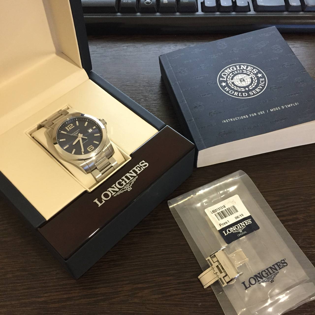 Изначально были на ремне (L3.759.4.96.0), новый оригинальный браслет был докуплен отдельно весной 2022, и в связи с развитием часовой болезни с этого времени часы практически не носились. То есть на данный момент часы на браслете соответствуют артикулу L3.759.4.96.6, но в комплекте запасные оригинальные шпильки от ремня и оригинальная клипса (сам ремень такая позоруха что не помню куда он подевался). Все запасные звенья браслета так же на месте.