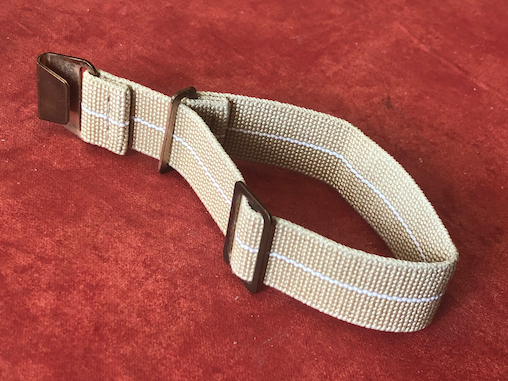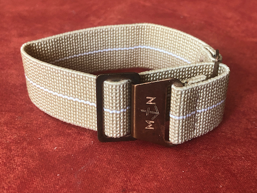 Кроме того, в комплект входит ремешок Erika's Original MN из эластичной парашютной стропы песочного цвета (Sahara) с бронзовой фурнитурой. Размер под руку около 17 см. Состояние отличное, фурнитура бронзовая с естественным патинированием. Приобретался новым у производителя специально к этим часам, очень удобен и хорошо к ним подходит, сделан очень качественно, цена нового была 75 евро, электронная переписка также имеется.