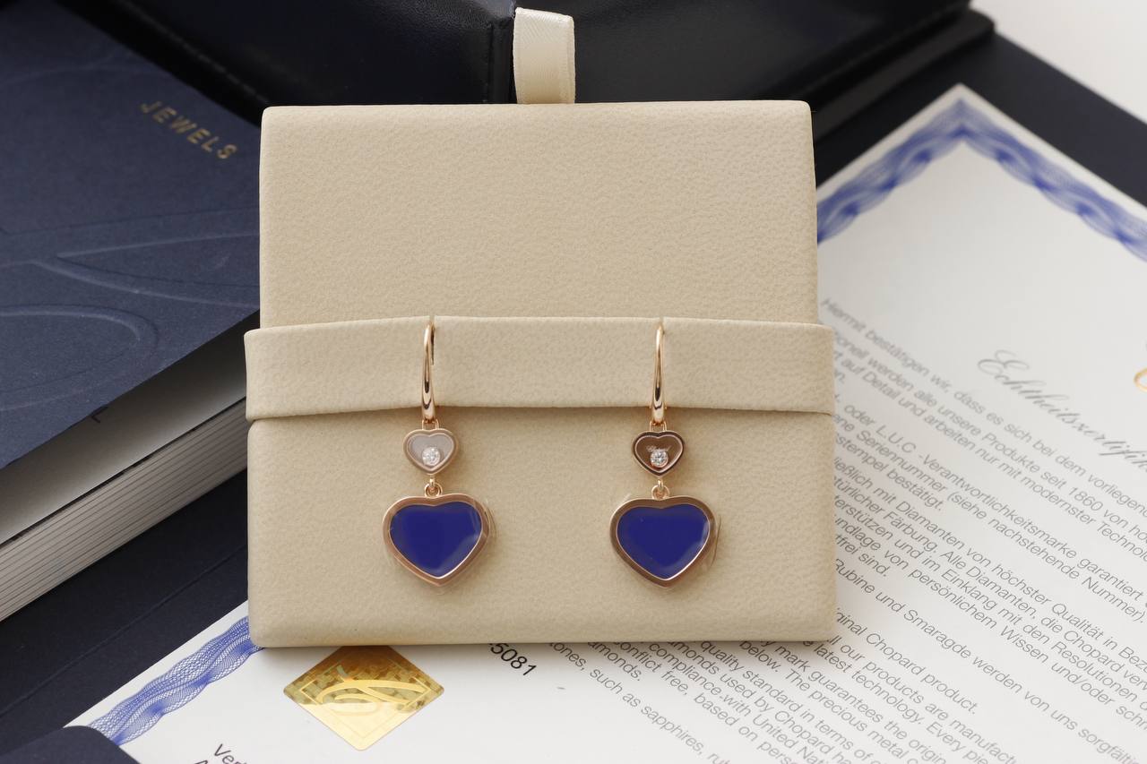 СЕРЬГИ CHOPARD HAPPY HEARTS HAPPY DIAMONDS 837482-5510 РОЗОВОЕ ЗОЛОТО 750/ПЛАВАЮЩИЕ БРИЛЛИАНТЫ/ВСТАВКА СИНЕГО ЦВЕТА