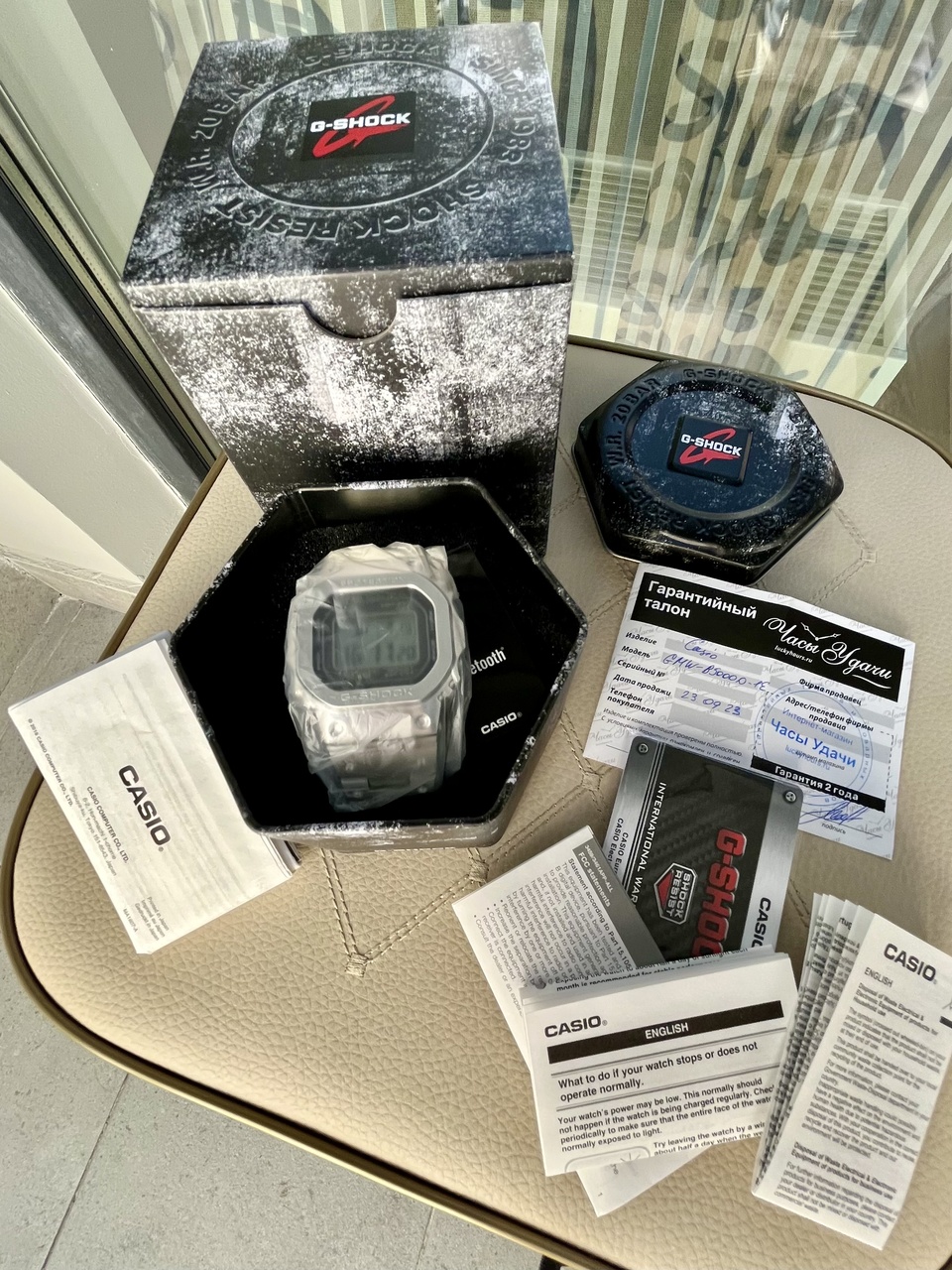 Покупал 23.09.2023. Выходил в них два раза - этого хватило, чтобы понять, что это не мое. Полный магазинный комплект, идеальное состояние, на полном браслете, гарантийный талон, электронный чек.