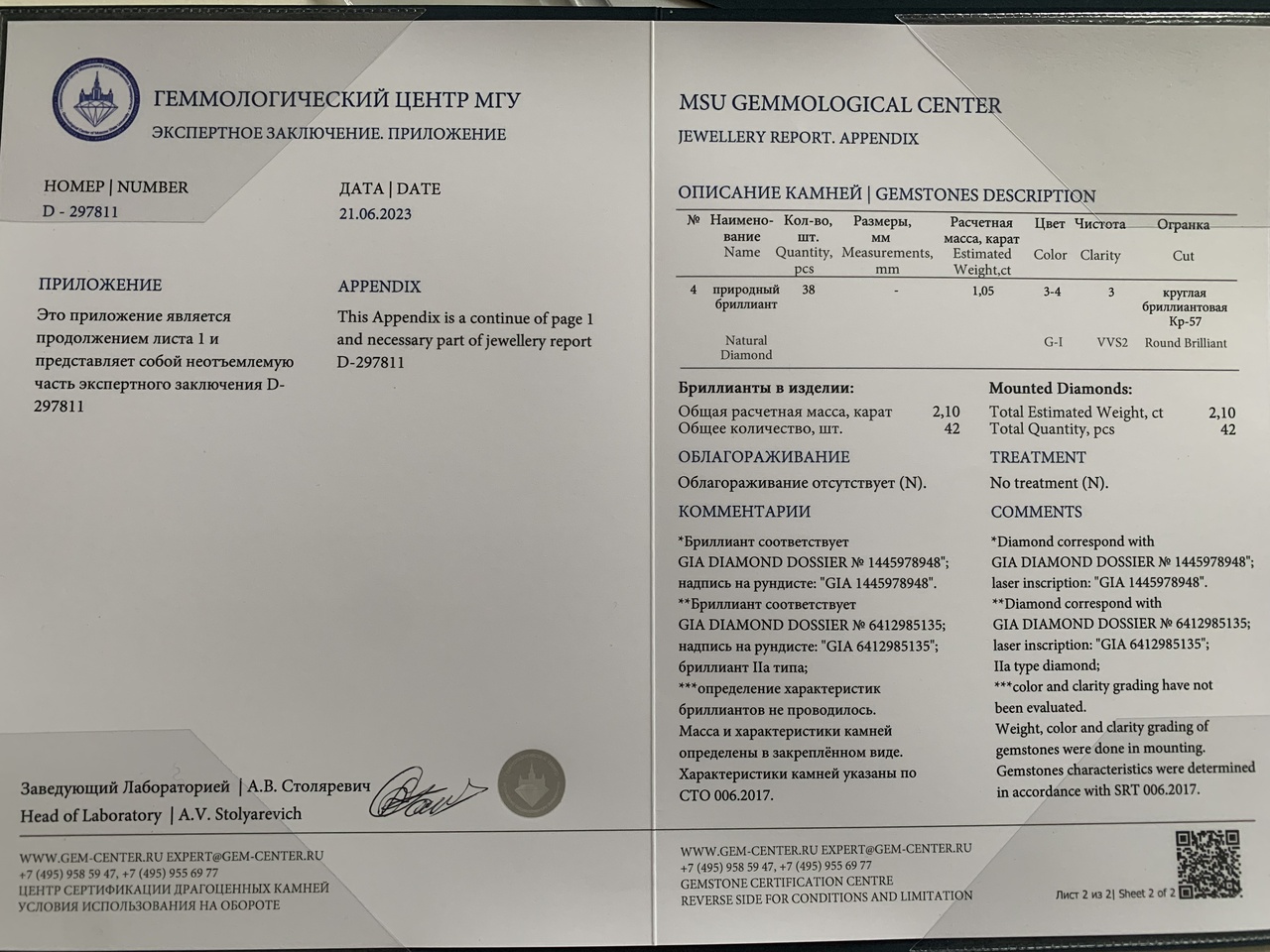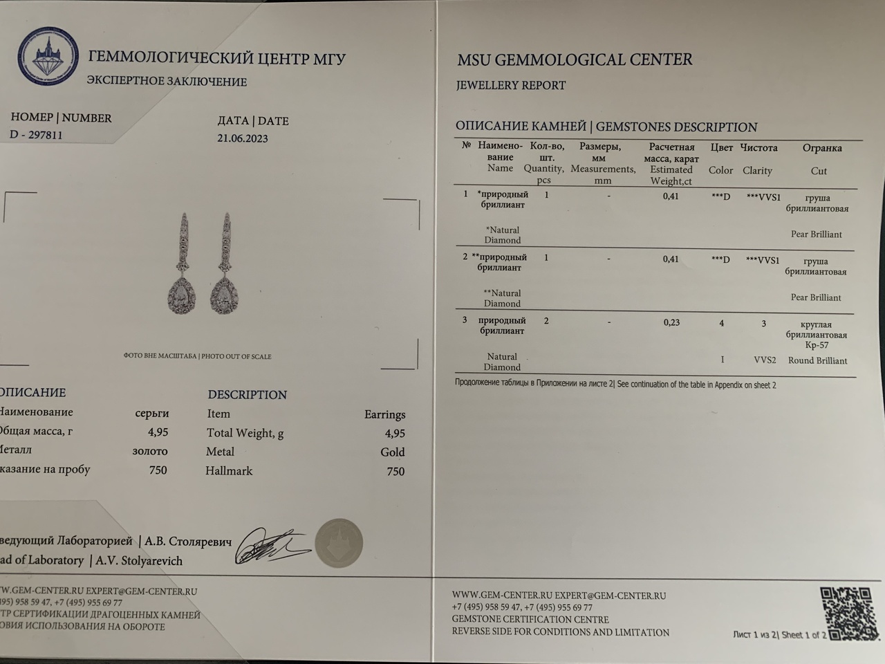Серьги белое золото с бриллиантами 2.10ct D/VVS1 новые (сертификат GIA/МГУ) недорого
