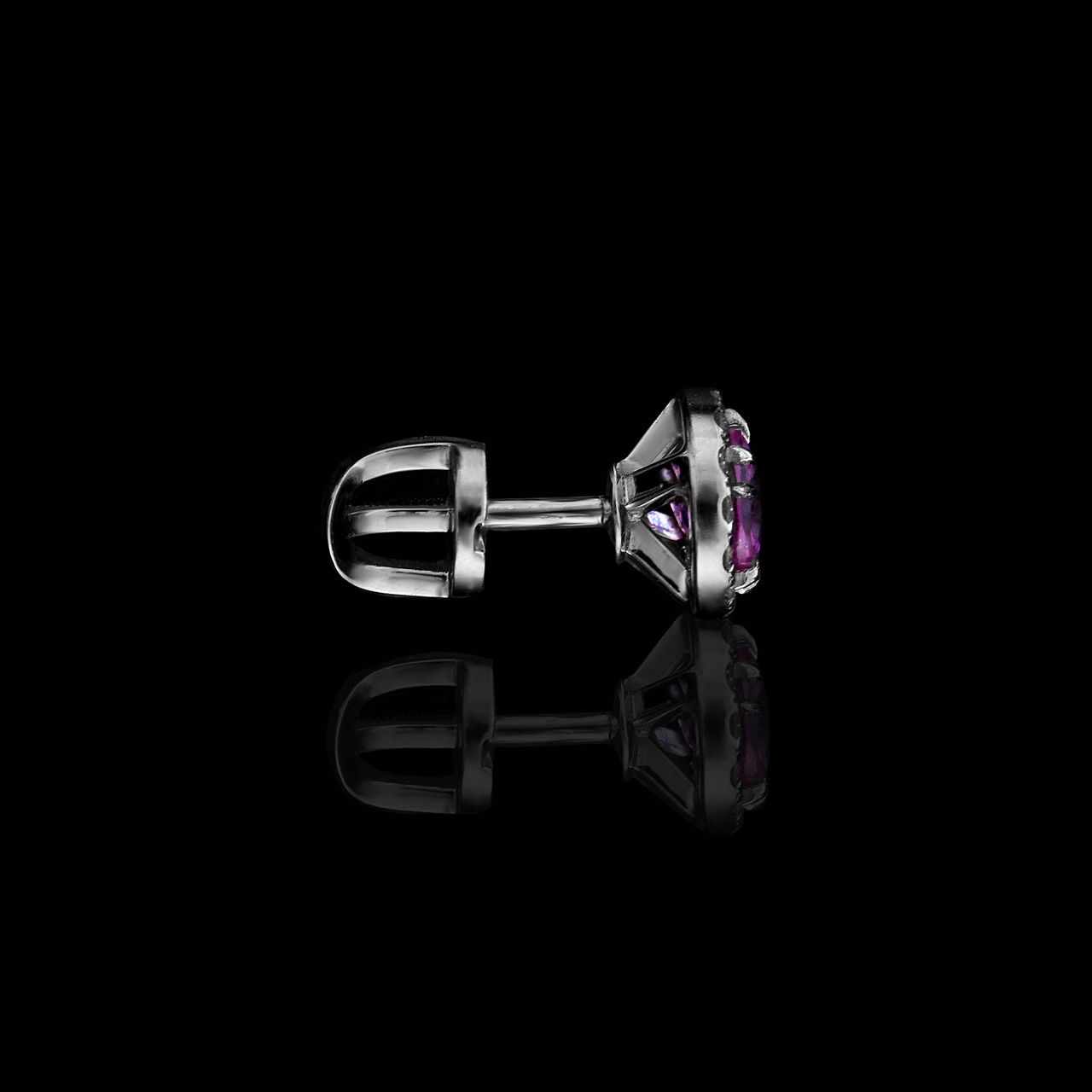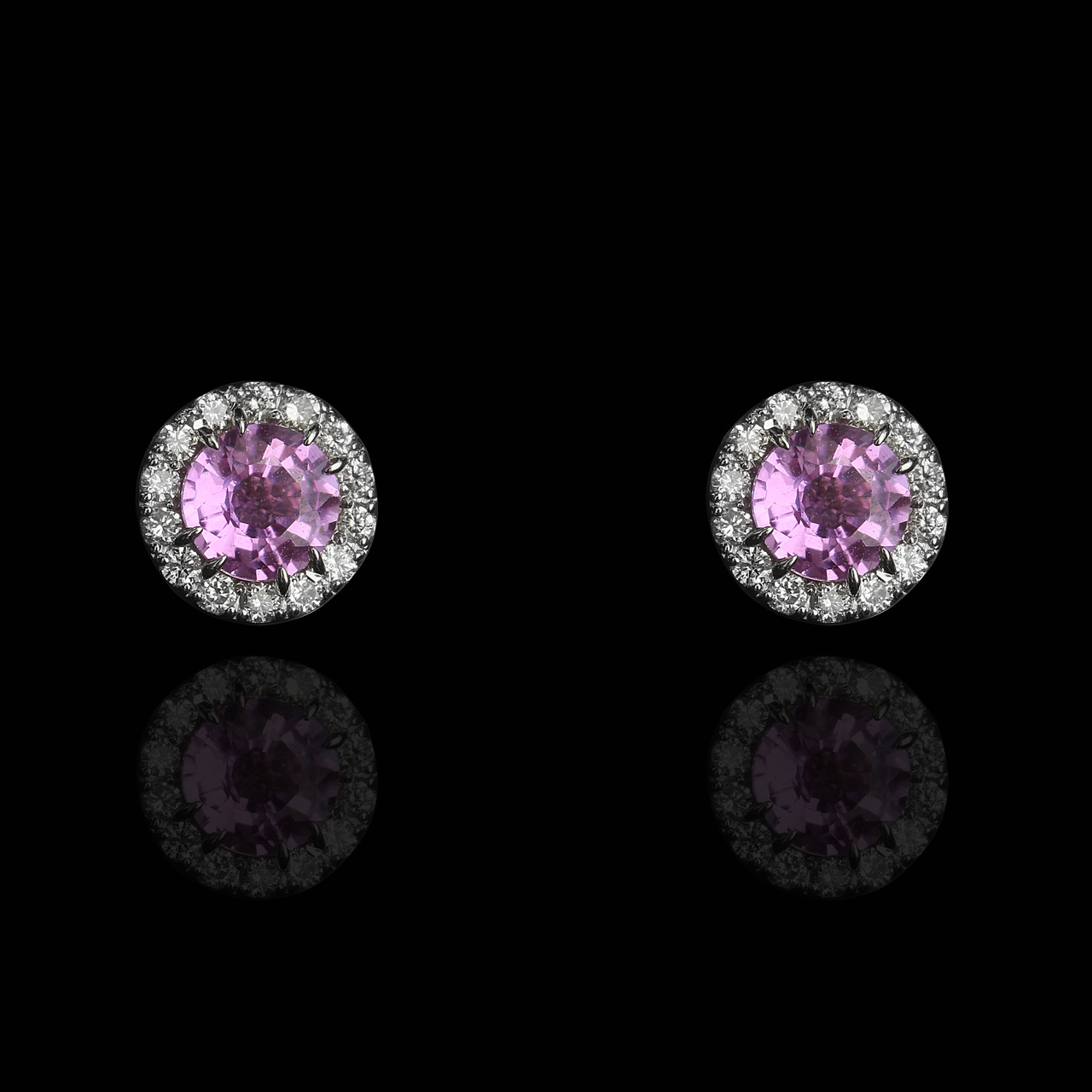 Серьги-пуссеты из белого золота с розовыми сапфирами 1,1 карат и бриллиантами 0,19 карат (сертификат МГЦ)