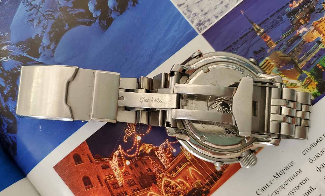 Была взята Seiko PADI Special Edition Prospex Solar Dive Watch with Silicone Strap 200 m SNE499 В ней оставили всё хорошее, а всё постыдное заменили. Оставили калибр на солнечной тяге, красивый циферблат с волнами и красной стрелкой, Пепси безель. Заменили позорную пластиковую защиту на дорогую стальную от YIBOKIES. Заменили позорный Хардлекс на сапфировое стекло, заменили силиконовый ремень на брутальный ЮБИЛЕЕЩЕ от Geckota и внутрь залили инертного масла для гидромодинга.