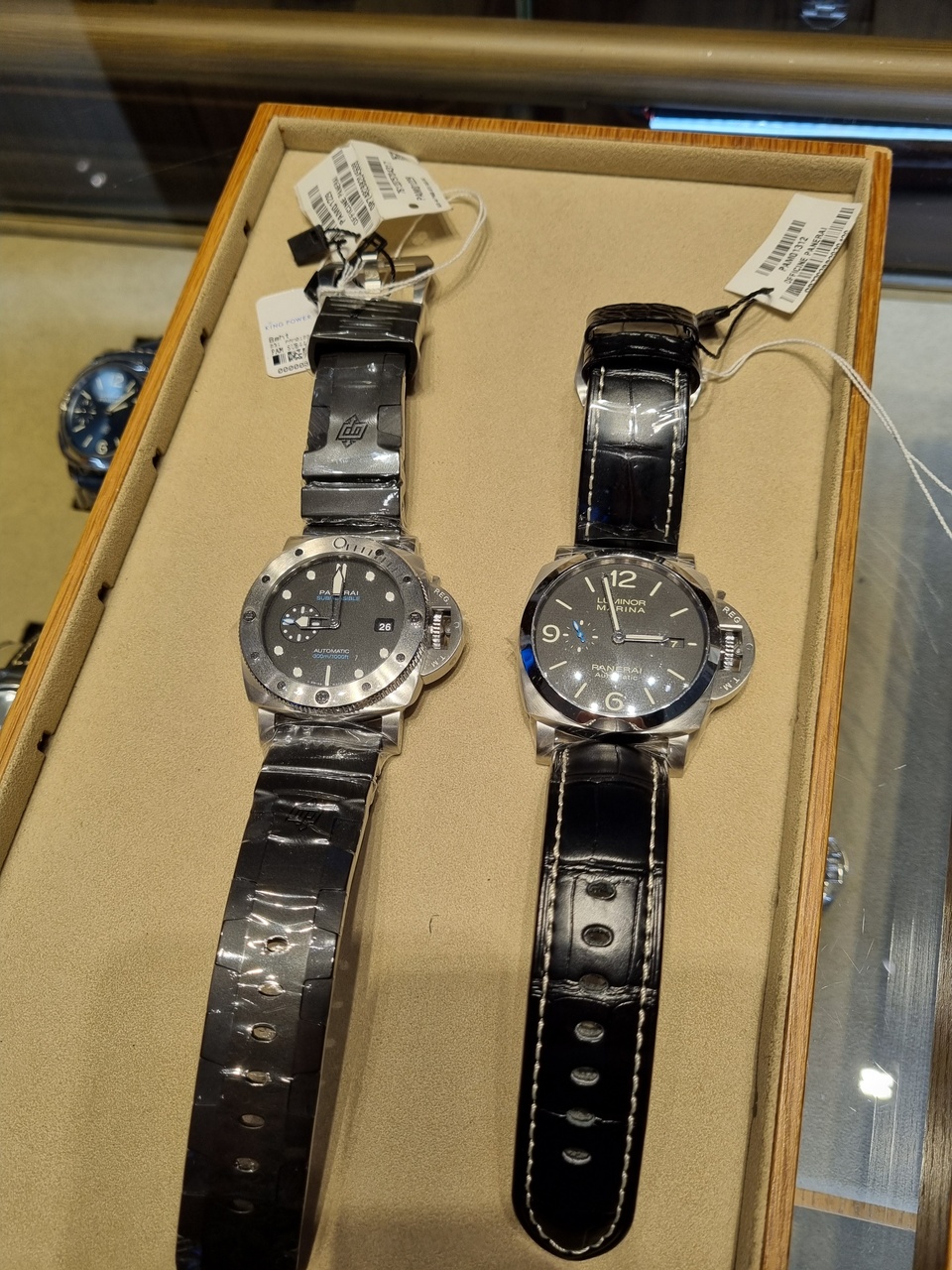 Есть - Rolex (Submariner Date, Yacht-master), Cartier Santos , Breitling Super Chronomat, Omega Seamaster Diver 300M, Panerai (01351, 01229, 00346, 00233, 00998) Были - Omega Seamaster 300M, Rolex (Turn-O-Graph, Hulk, Submariner No Date, Datejust 41) , Breitling (Superocean Heritage 46 & 42, Superocean Heritage II 42, Chronomat Evolution, Chronomat 41,42,44, Superocean Heritage II хронограф, Navitimer ), Cartier Santos 100 XL , Breguet Marine Big Date, Zenith Pilot Bronze, Panerai (00312, 01392, 00927, 00795, 01321, 01316, 00572, 00723, 00268)