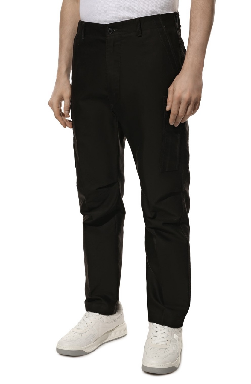 К созданию тёмно-коричневых карго Tom Ford подошёл с максимальным вниманием к комфорту.Модель выполнили так,чтобы она повторяла силуэт тела:за это отвечают защипы в области коленей.Заниженная линия шага не сковывает движения,а мягкий плотный хлопок не перегревает тело.