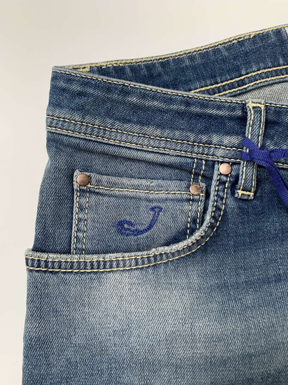 JACOB COHËN новые мужские джинсы кроя Slim J622 светло-синего цвета с потёртостями (32 size)