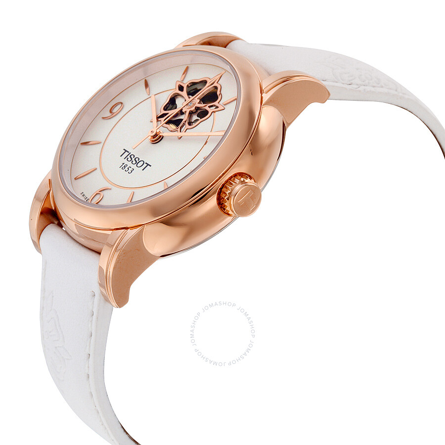 Женские часы Tissot Lady Heart Powermatic 80 с перламутровым циферблатом модель T0502073701704. c корпусом из нержавеющей стали с PVD покрытием из розового золота и белым кожаным ремешком. Безель из розового золота с PVD покрытием . Белый перламутровый циферблат (открытое сердце) со стрелками в стиле альфа цвета розового золота и часовыми метками. Арабские цифры обозначают позиции 3, 6 и 9 часов. Тип циферблата: аналоговый. Автоматический механизм Tissot calibre Powermatic 80,601, основанный на Tissot calibre Powermatic 80, с 23 драгоценными камнями, запасом хода около 80 часов. Устойчивое к царапинам сапфировое стекло. Прозрачная задняя крышка . Корпус круглой формы. Размер корпуса: 35 мм. Толщина корпуса: 9,35 мм. Ширина ремешка: 16 мм. Застежка клипса. Функции: часы, минуты, секунды. Повседневный стиль часов. Марка часов: Swiss Made.