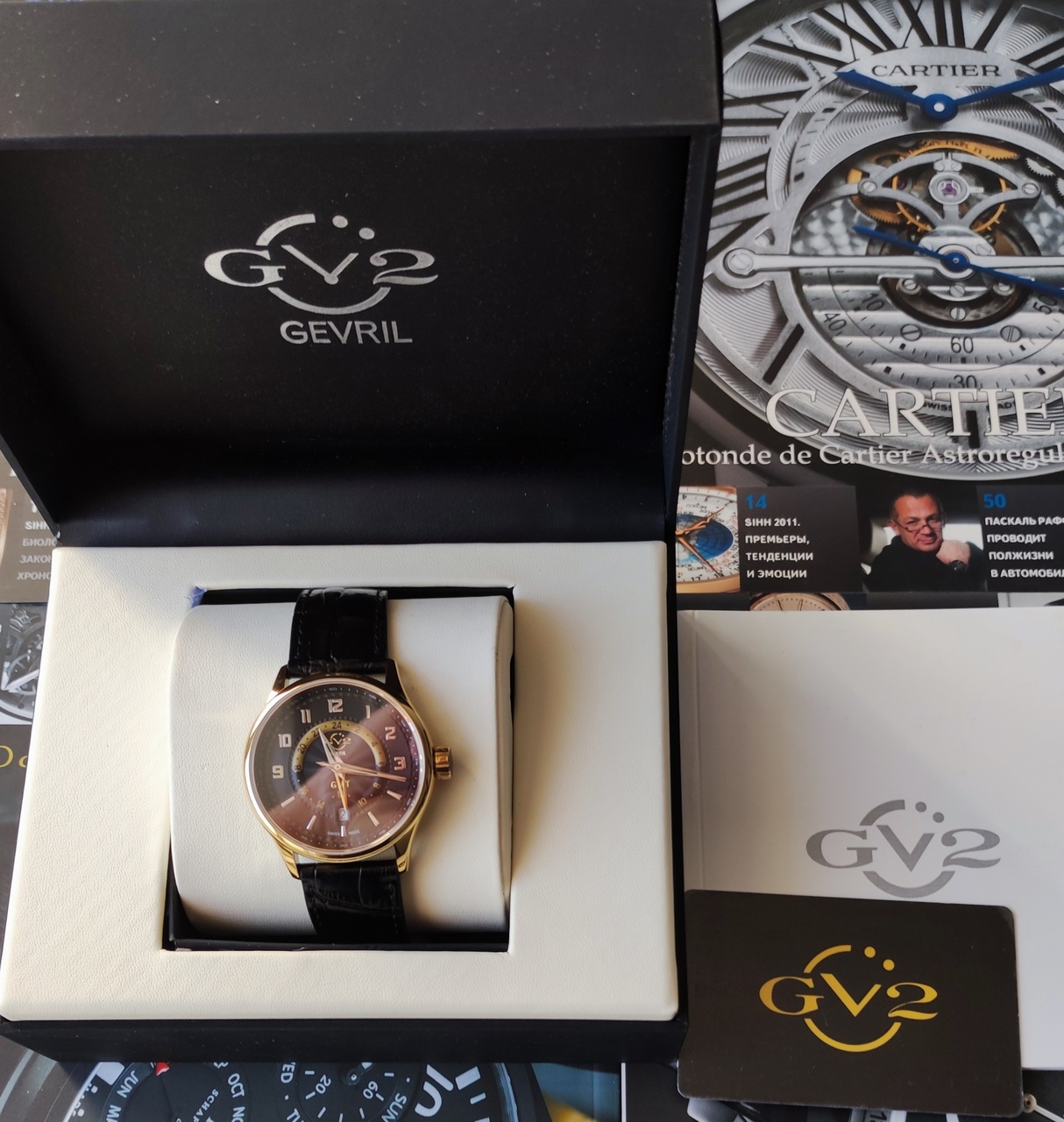 GV2 by GEVRIL GIROMONDO GMT \ SWISS MADE \ ВТОРОЙ ЧАСОВОЙ ПОЯС \ 42 мм \ LIMITED EDITION \ в комплекте