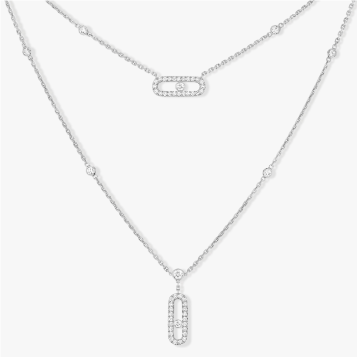 ПОДВЕСКА * MESSIKA * MOVE UNO 2 RANGS PAVÉ 07174 - WG / БЕЛОЕ ЗОЛОТО 18К / 2 ПОДВИЖНЫХ БРИЛЛИАНТА / БРИЛЛИАНТЫ КРУГЛОЙ ФОРМЫ ОГРАНКИ