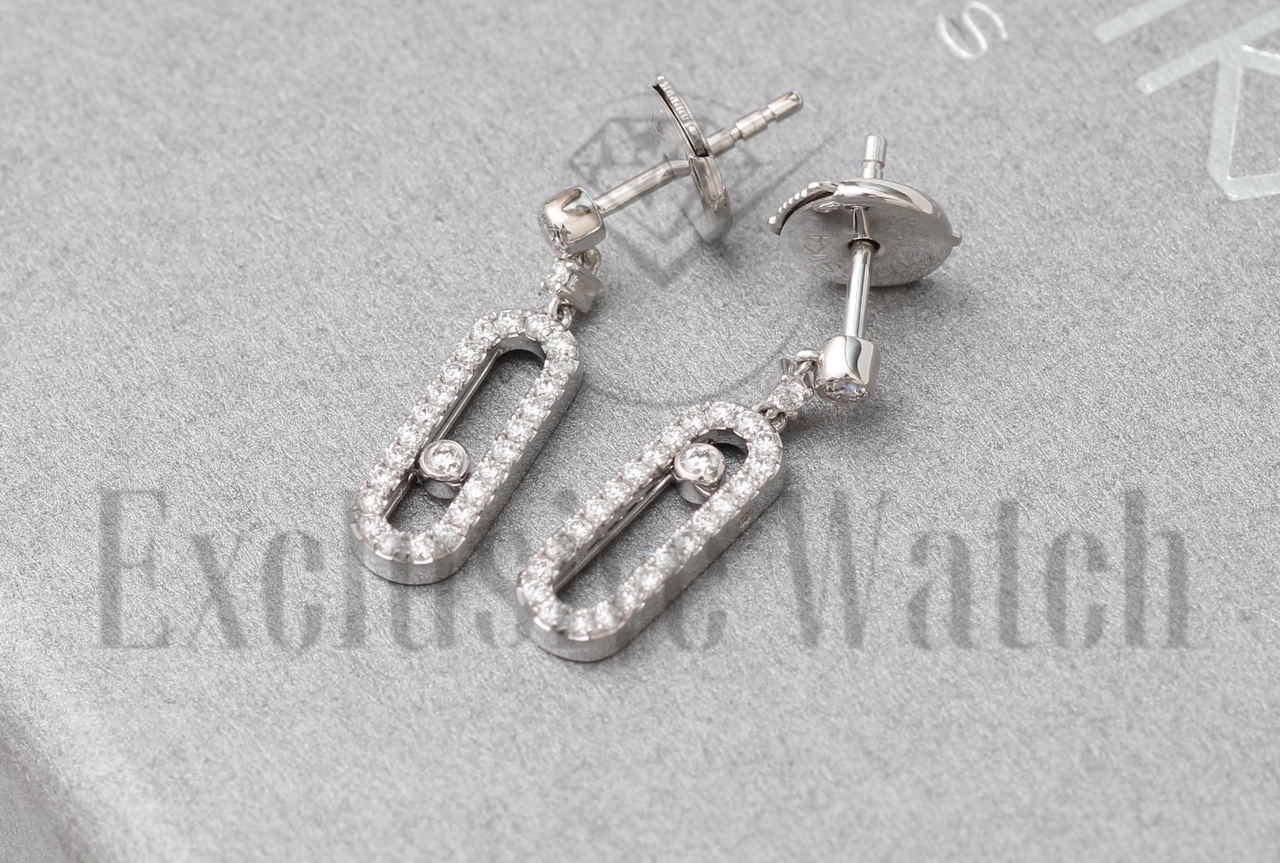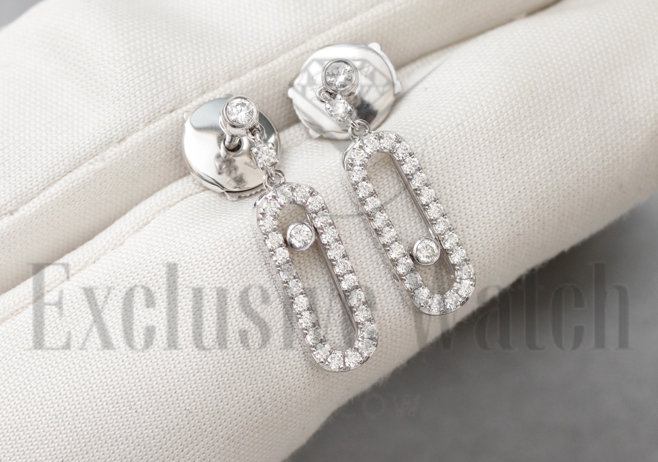 СЕРЬГИ *MESSIKA* MOVE UNO 05631 - WG / БЕЛОЕ ЗОЛОТО 750 ПР. / 2 ПОДВИЖНЫХ БРИЛЛИАНТА / БРИЛЛИАНТЫ КРУГЛОЙ ОГРАНКИ ( G / VS )