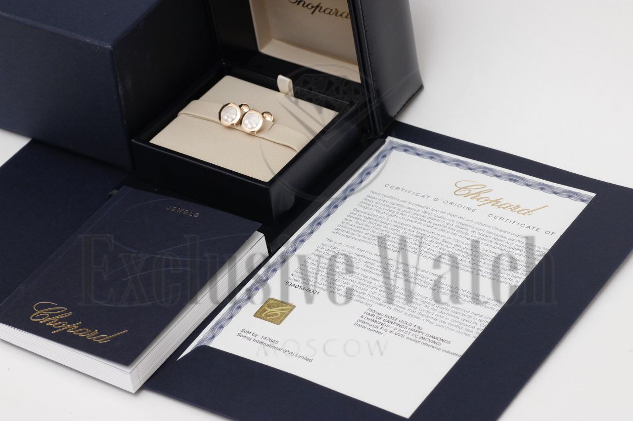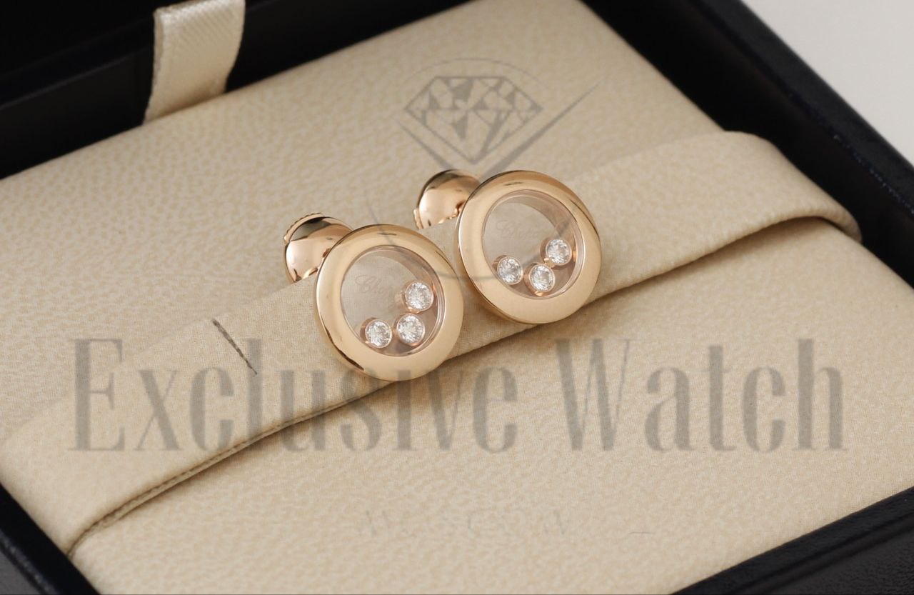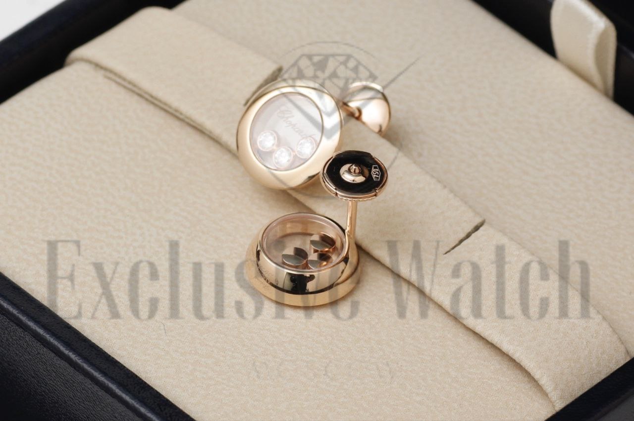 СЕРЬГИ *CHOPARD* HAPPY DIAMONDS ICONS ROUND 83A018 - 5001 / РОЗОВОЕ ЗОЛОТО 750 ПР. / 3 ПЛАВАЮЩИХ БРИЛЛИАНТА