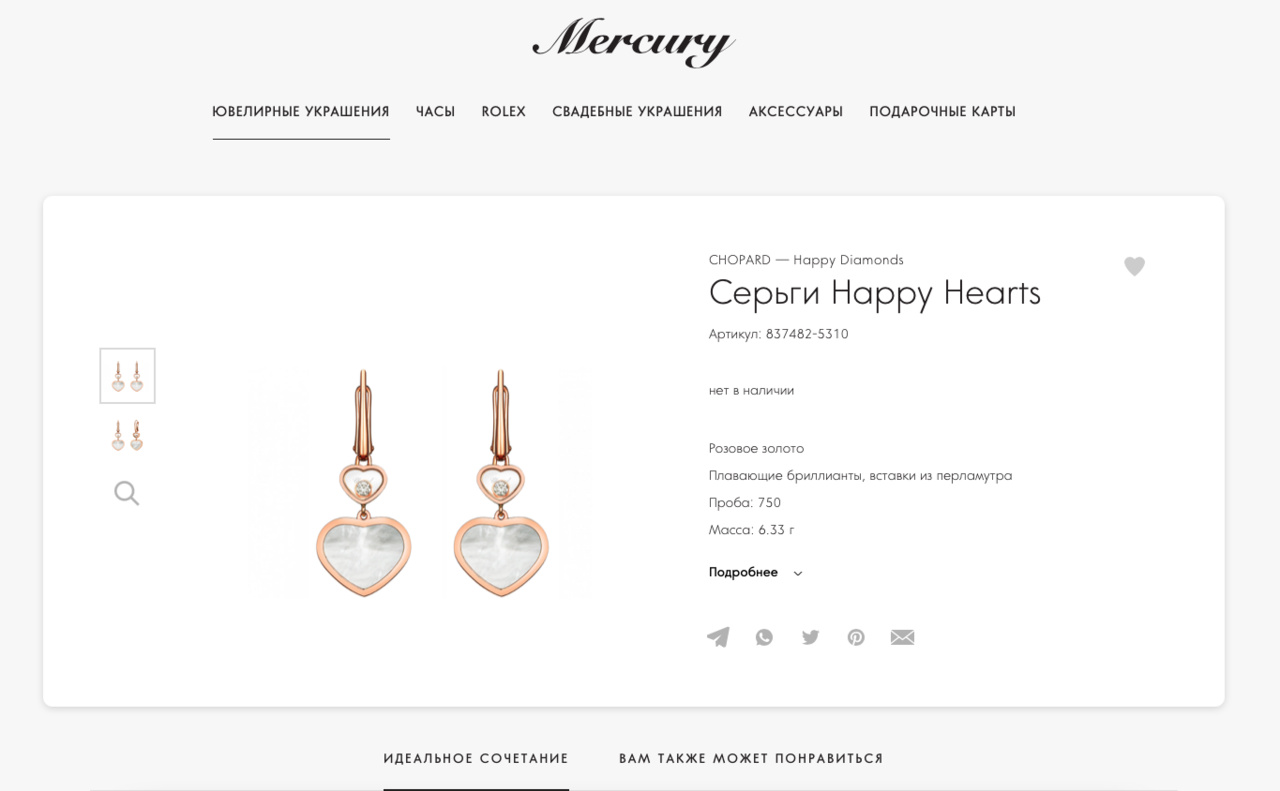 СЕРЬГИ *CHOPARD* HAPPY HEARTS 837482-5310 В РОЗОВОМ ЗОЛОТЕ С БЕЛЫМ ПЕРЛАМУТРОМ И ПЛАВАЮЩИМ БРИЛЛИАНТОМ 0.1 ct
