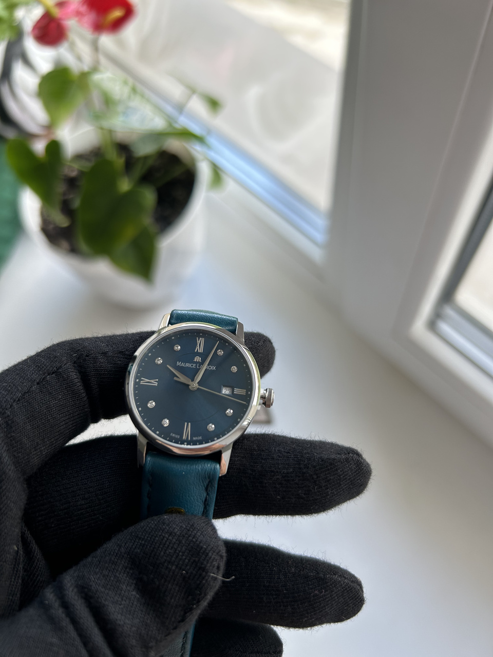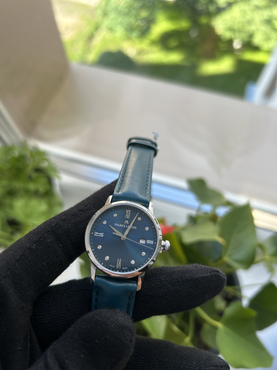 Цифер просто невероятного насыщенного сине-зеленого цвета, меняющего оттенок. Метки-бриллианты, идеально гармонирующий с цифером ремешок с функцией быстрой замены. На заводной головке заводская пломба. В живую часы выглядят статусно, дорого и явно претендуют на идеальную покупку или безупречный подарок