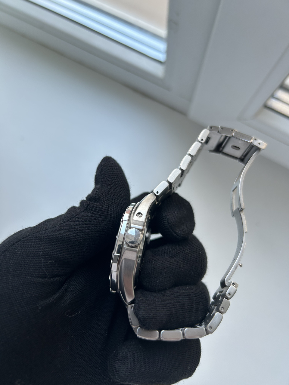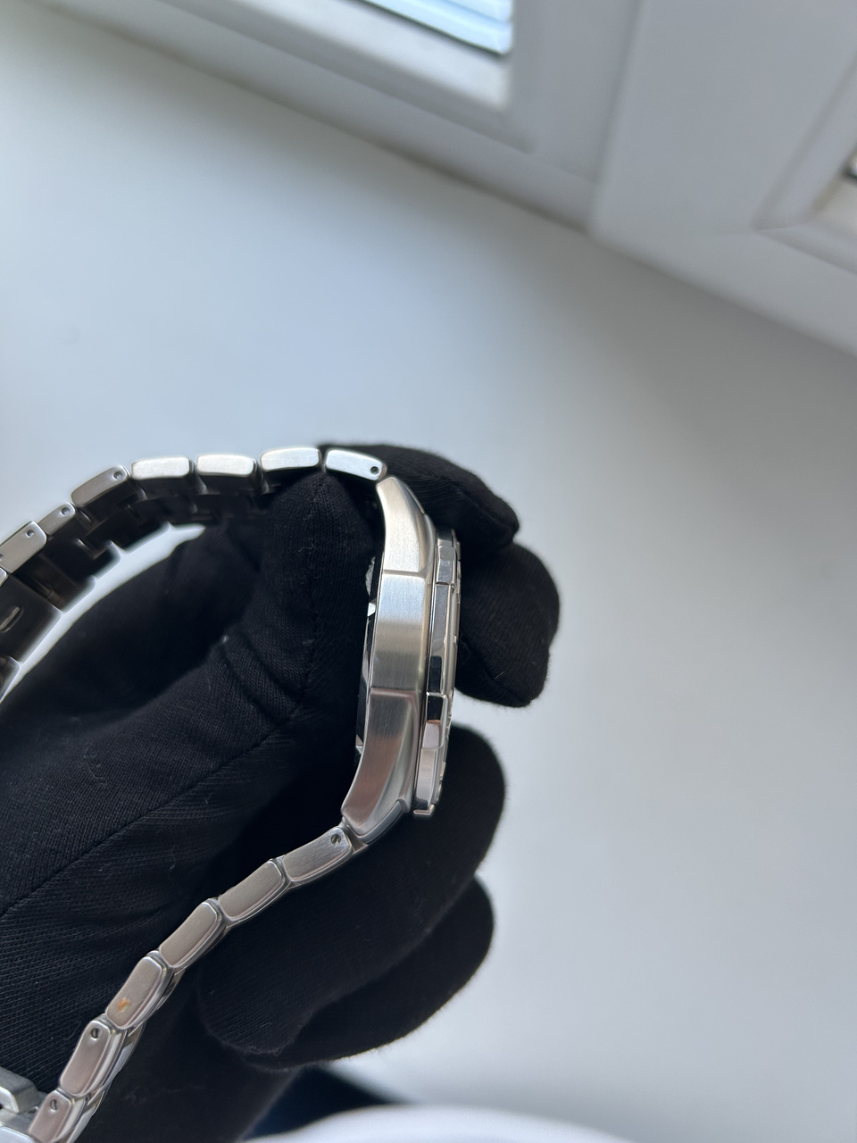 Касаемо состояния. Имеются следы естественной носки. Ничего сильно критичного и явно раздражающего нет. Браслет уменьшен под запястье около 17,5 см, снятые звенья прилагаются. Полнейший комплект.