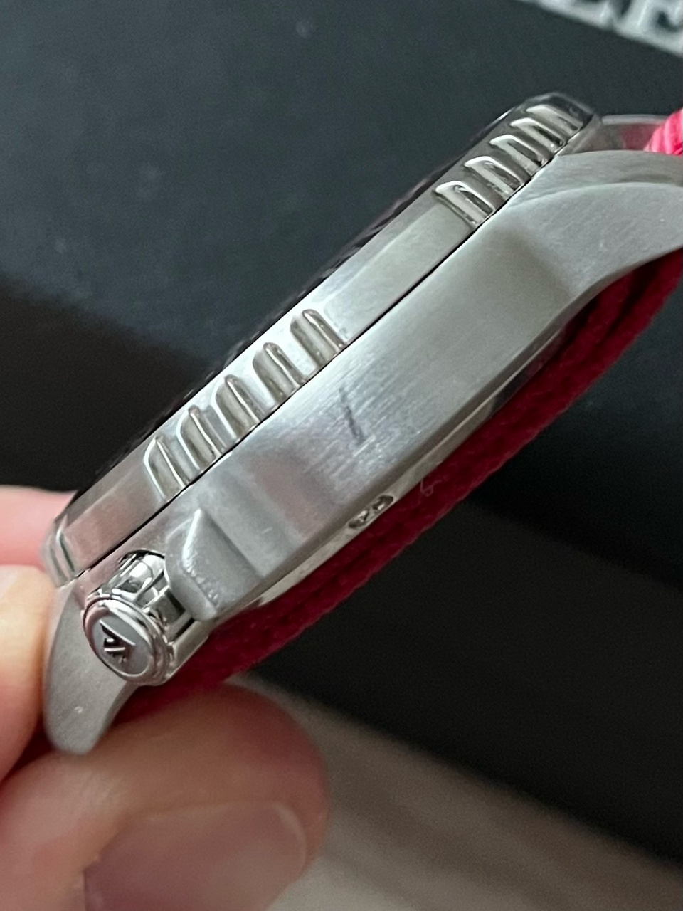 Фирменный яркий люм голубого цвета, точка на безеле зеленая