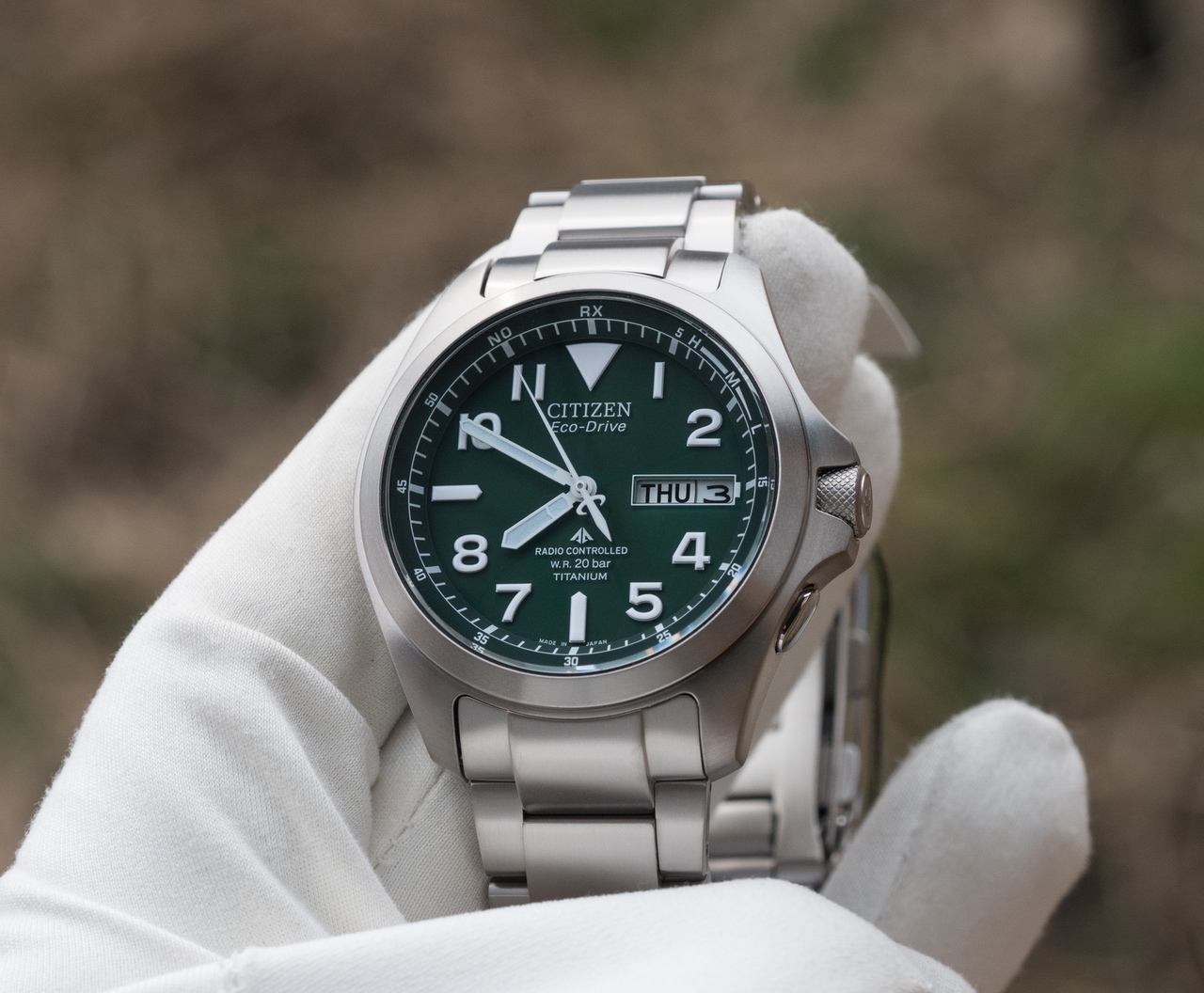 Популярная внутрияпонская милитари модель Citizen Promaster Land с зеленым циферблатом.