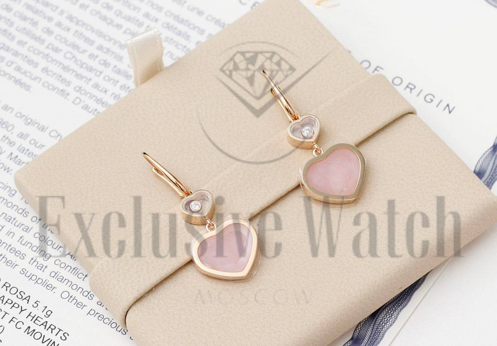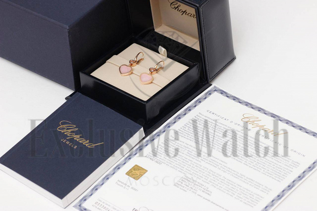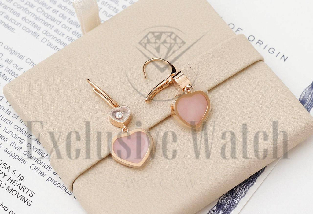 СЕРЬГИ *CHOPARD* HAPPY HEARTS 837482 - 5620 / РОЗОВОЕ ЗОЛОТО 18К / РОЗОВЫЕ ОПАЛЫ / 2 ПЛАВАЮЩИХ БРИЛЛИАНТА