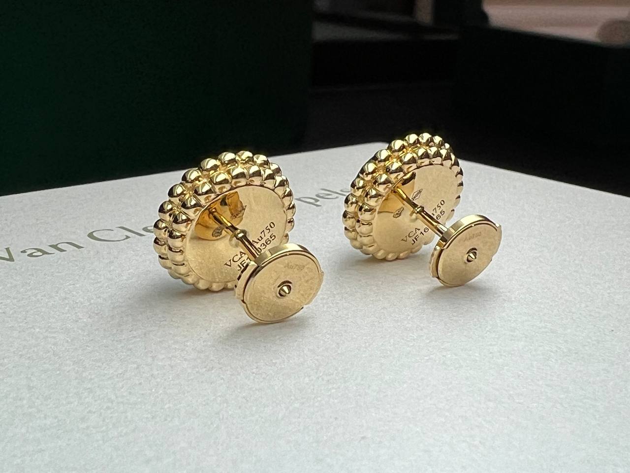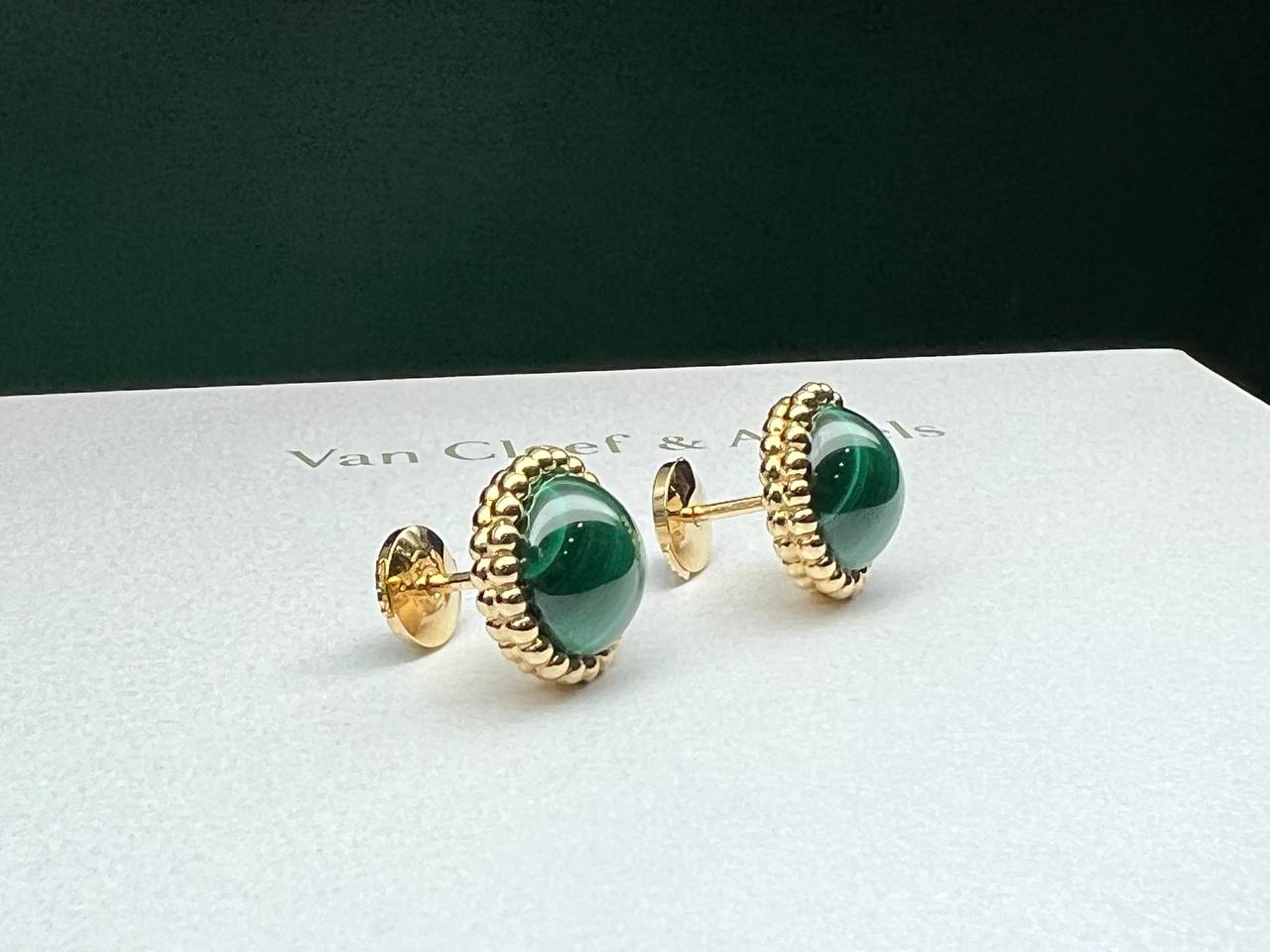 СЕРЬГИ ПУСЕТЫ *VAN CLEEF & ARPELS* PERLEE VCARP4DS00 В ЖЕЛТОМ ЗОЛОТЕ С МАЛАХИТОМ