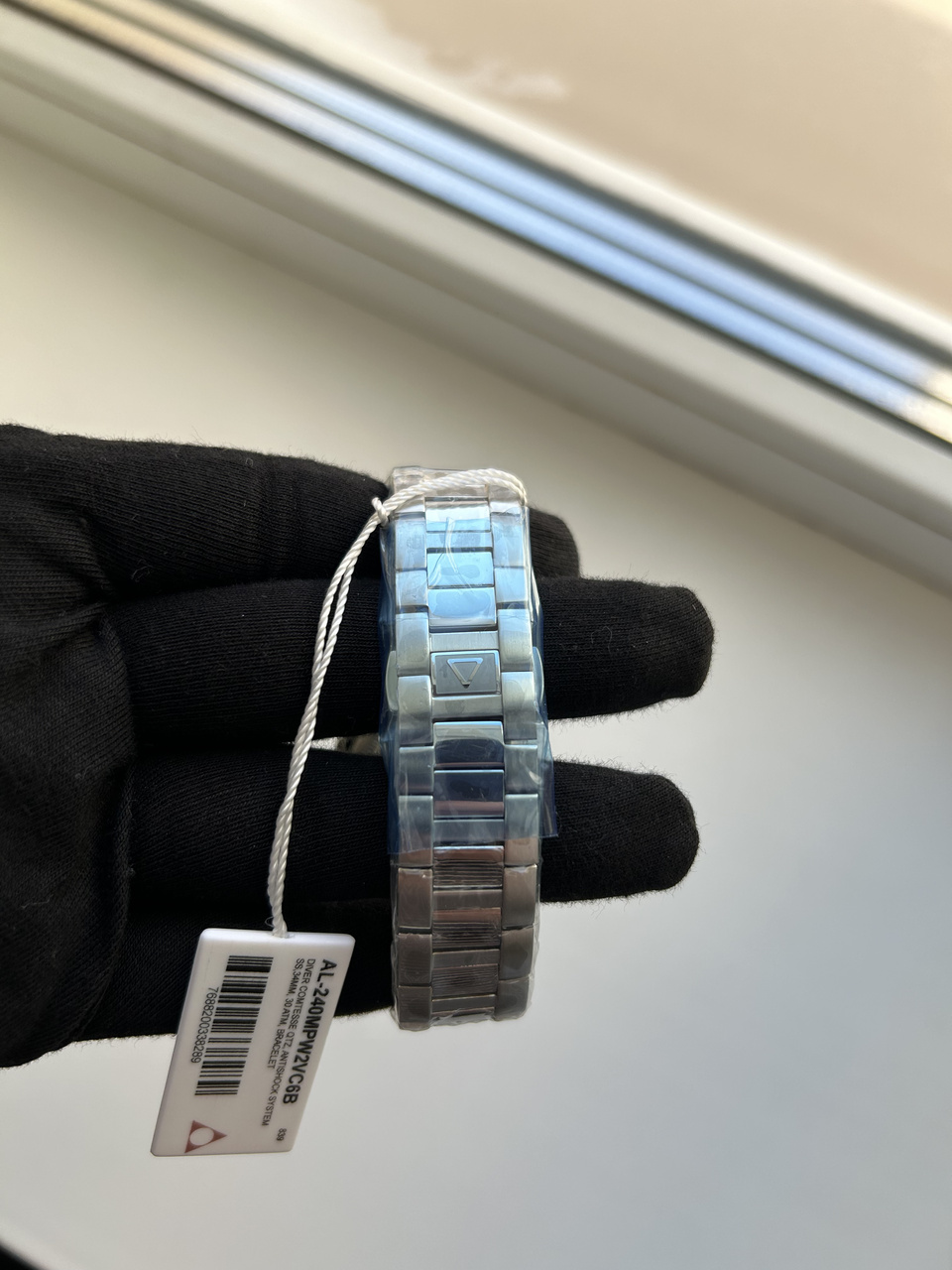 В продаже отличный женский дайвер от уважаемого производителя. Перламутровый цифер с накладными элементами, красиво переливающийся на солнце, швейцарский кварцевый калибр, отличный литой браслет. Суммарно имеем универсальный повседневник фактически без слабых сторон. В живую часы выглядят гораздо богаче и интереснее чем на фото. Ритейл $1295