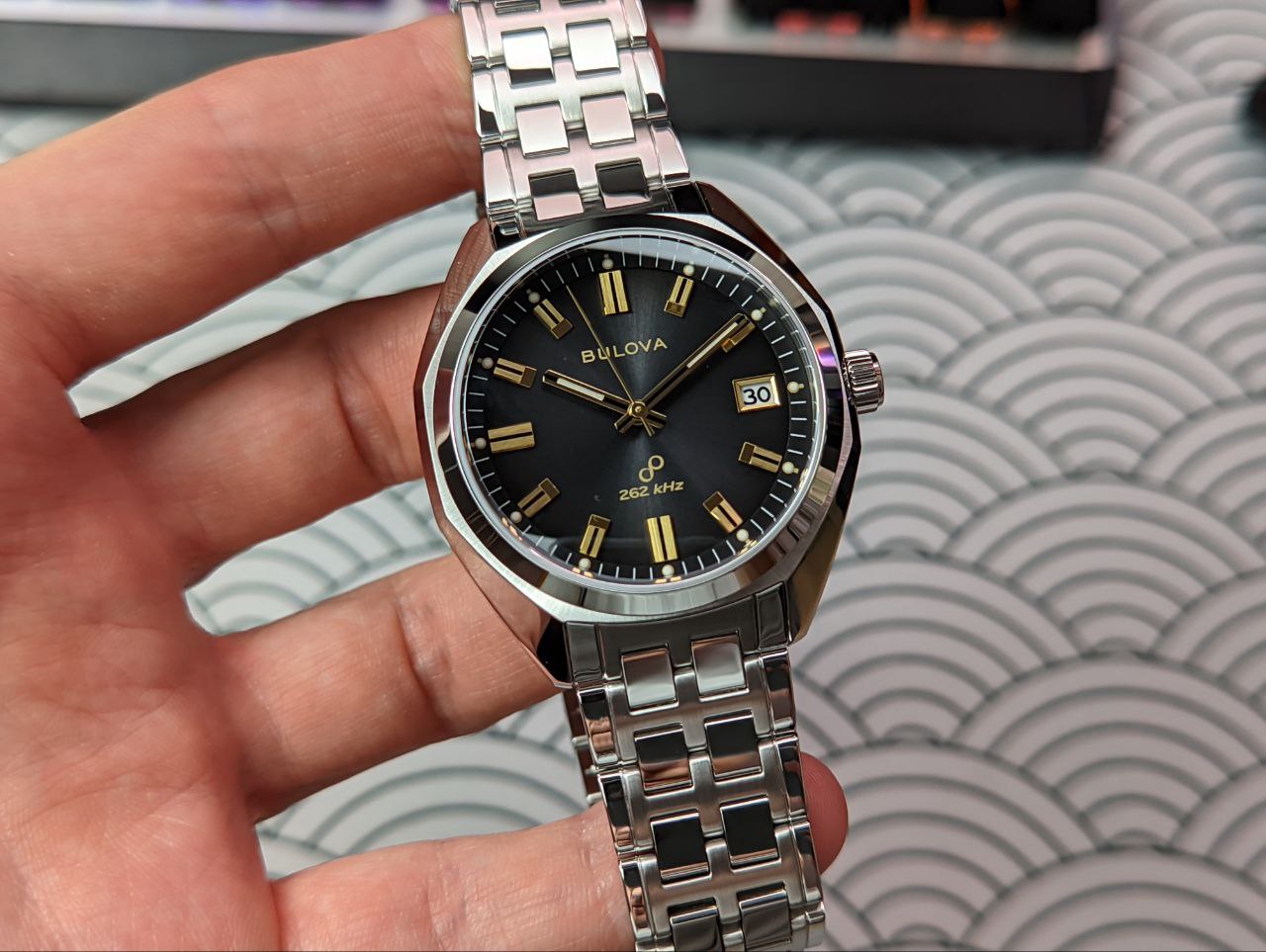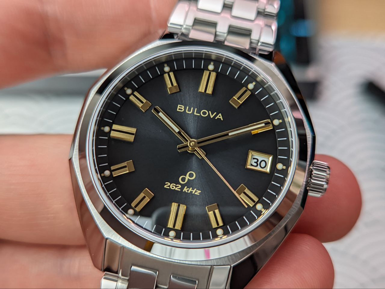 Переиздание исторической модели Bulova 1973 Jet Star “F” на современном высокоточном кварцевом механизме HPQ Bulova’s Precisionist с частотой 262kHz и очень плавной секундной стрелкой.