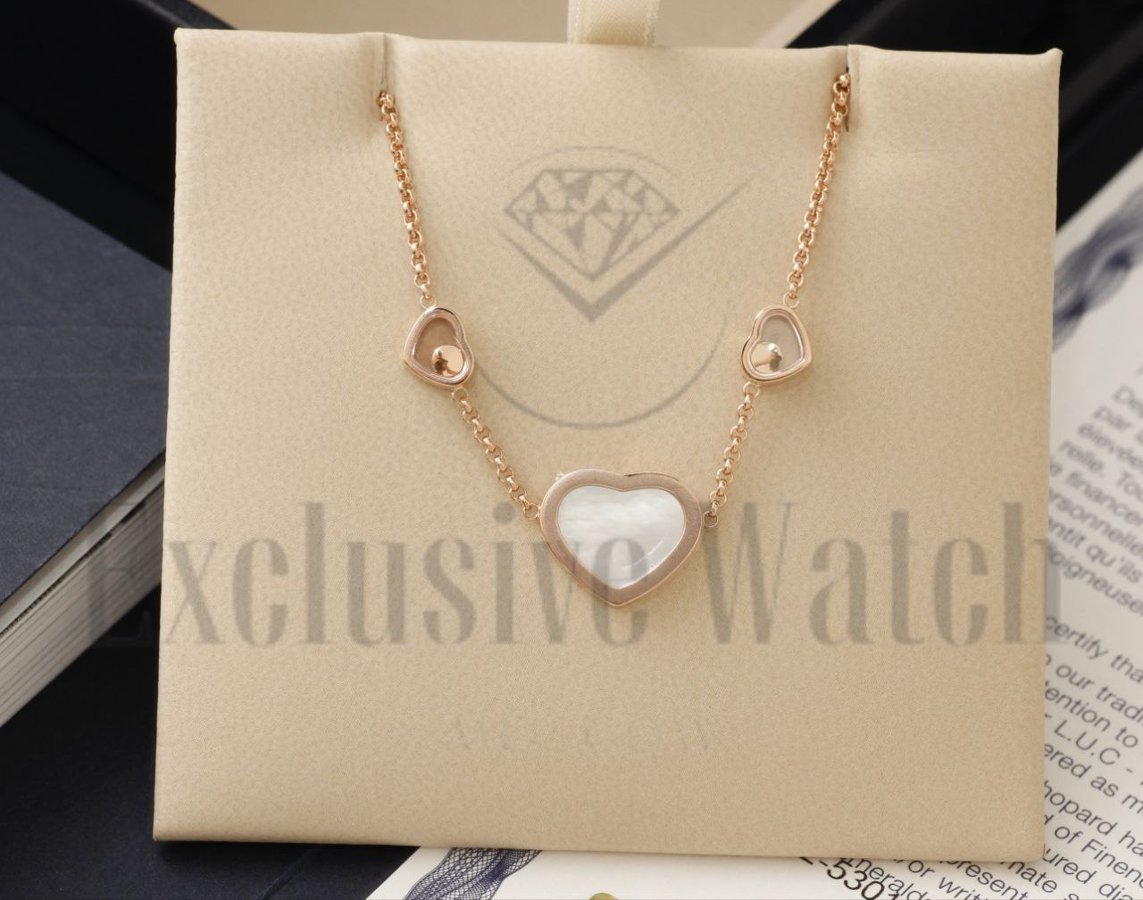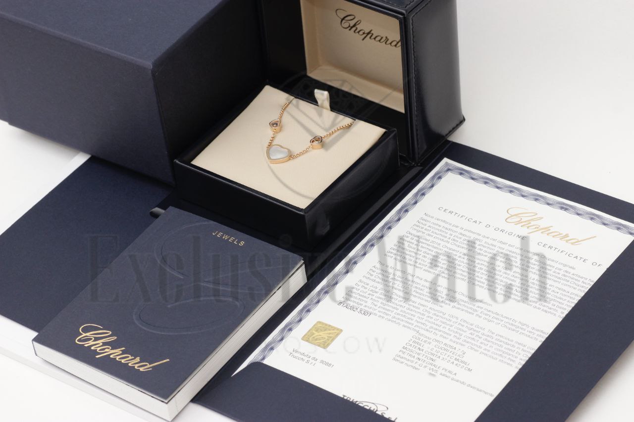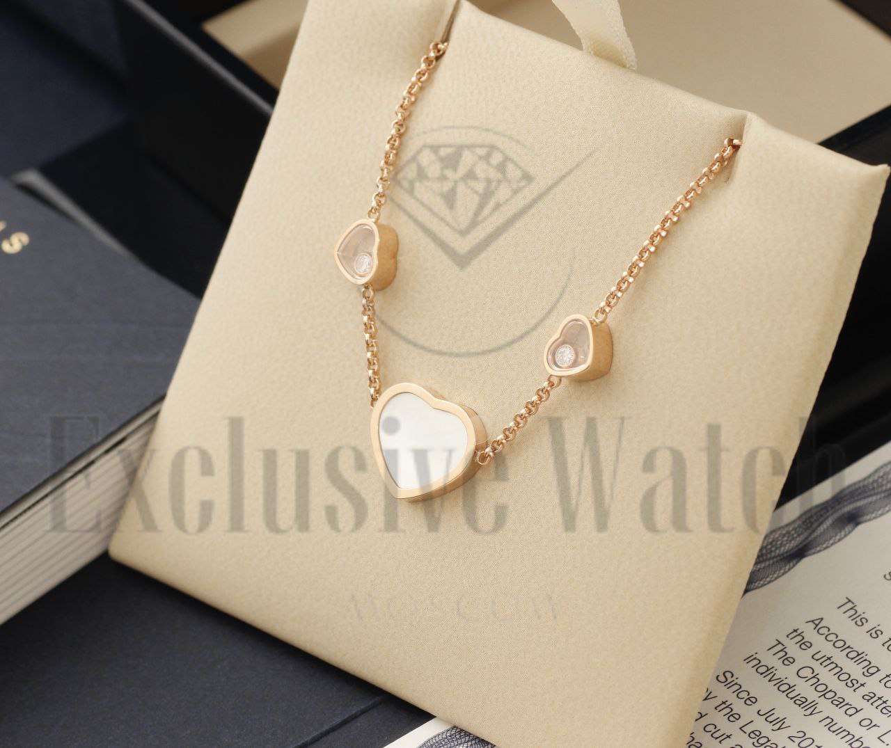 КОЛЬЕ * CHOPARD * HAPPY HEARTS 81A082-5301 / РОЗОВОЕ ЗОЛОТО 18К / 2 ПЛАВАЮЩИХ БРИЛЛИАНТА / ПЕРЛАМУТР