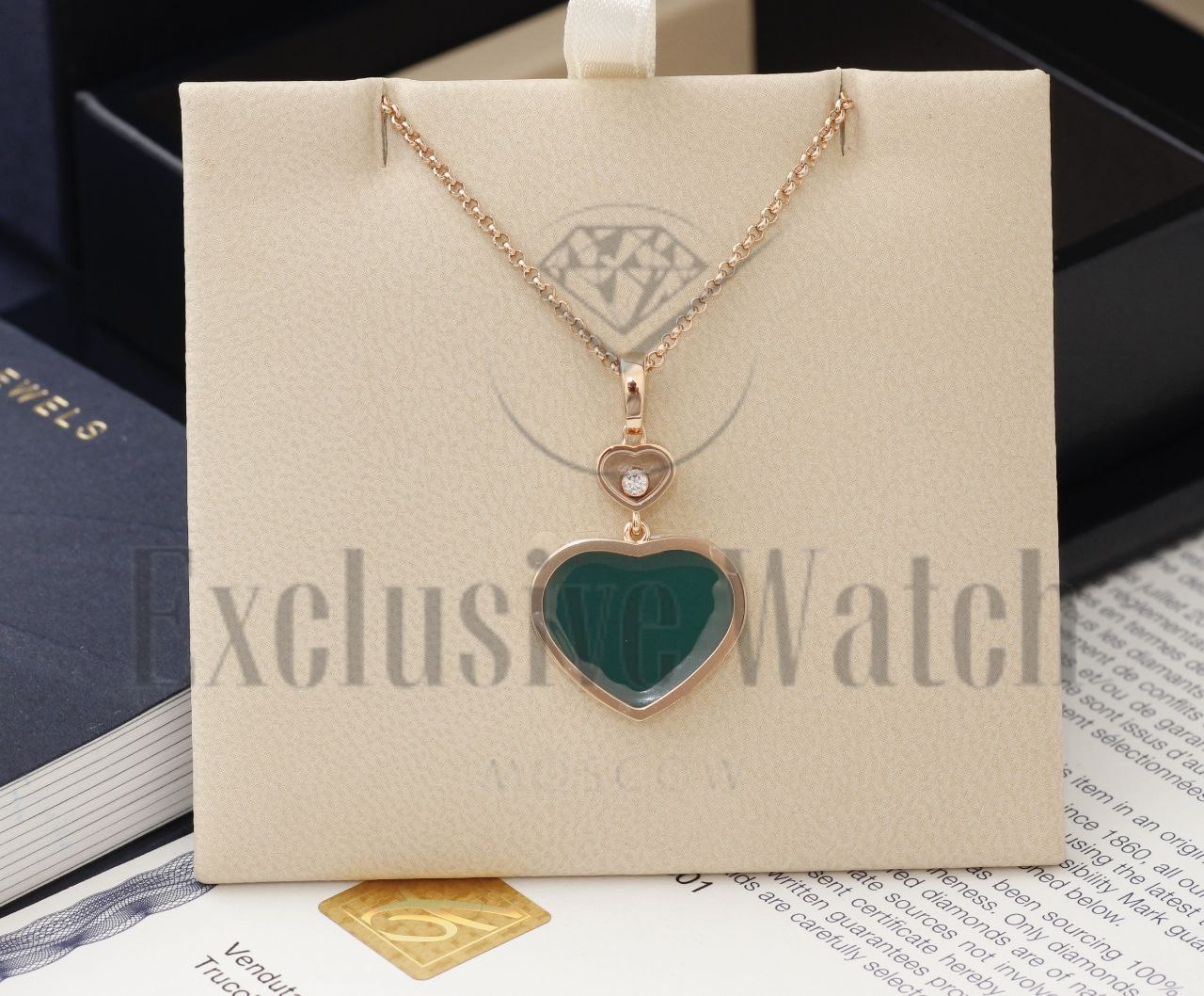 КУЛОН * CHOPARD * HAPPY DIAMONDS 797492 -5101 / РОЗОВОЕ ЗОЛОТО 18 К / ПЛАВАЮЩИЙ БРИЛЛИАНТ / ЗЕЛЕНЫЙ АГАТ
