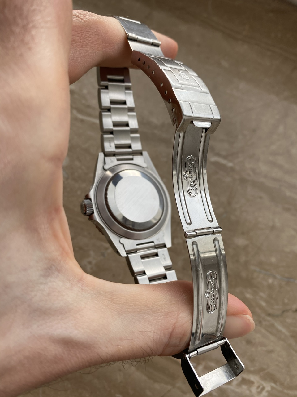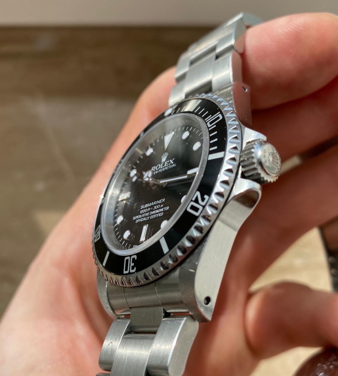 Куплены новыми в апреле 2012 года. Ролекс к тому времени уже производил новую версию керамическим безелем 114060, заменивший легендарного "бездатого" с просверленными ушами.