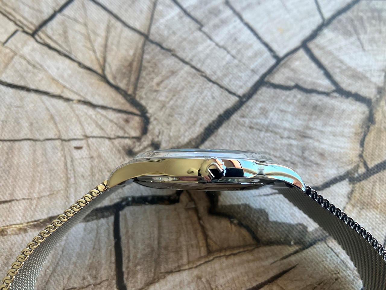 - Браслет: Нержавеющая сталь 316L «миланское плетение», звенья на винтах. Застежка: бабочка с боковыми кнопками.