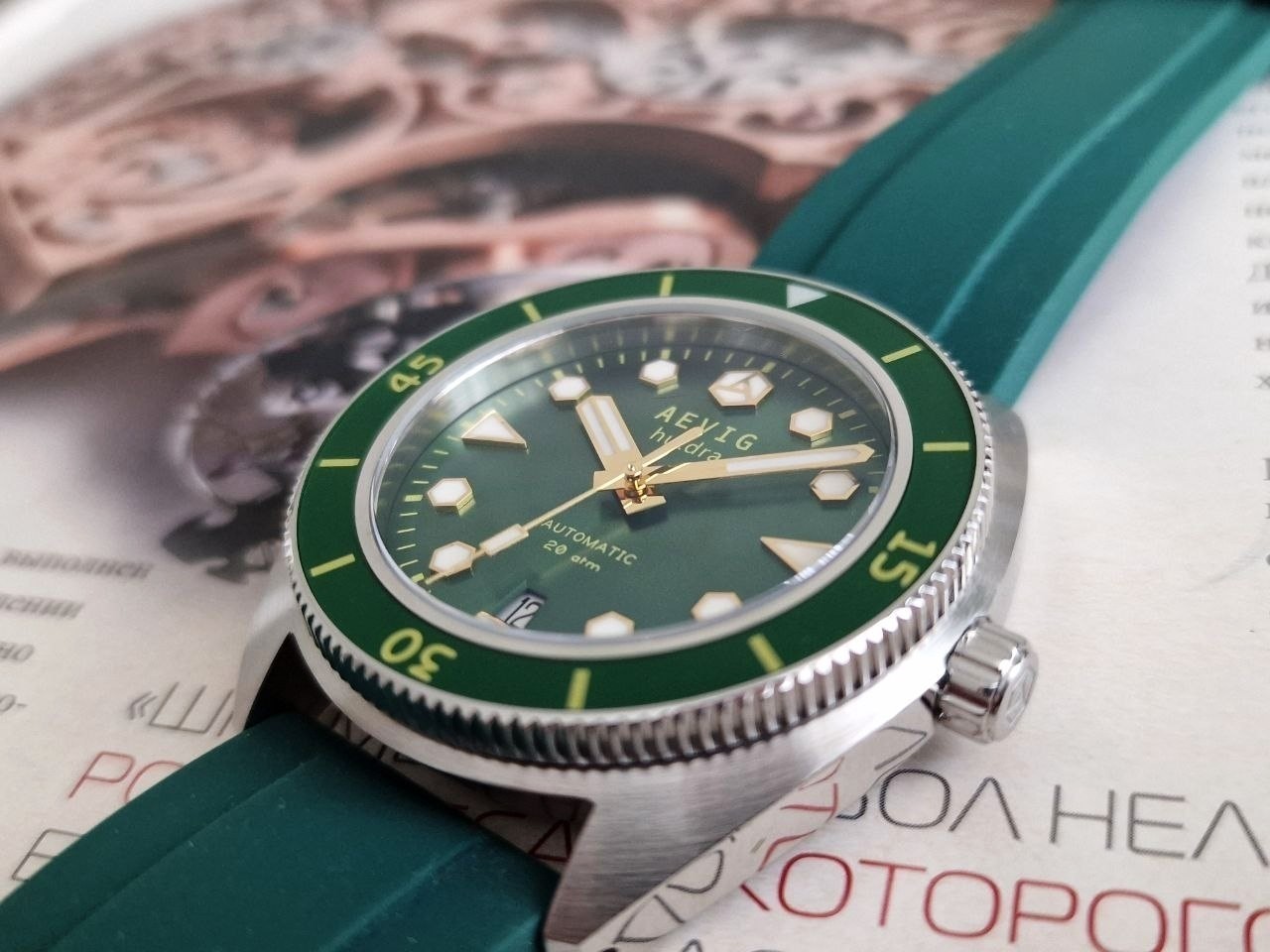 Сапфир. Начинка Ситизен 9015. Безель 120 кликов. Водозащита 200м. Чумовой бирюзовый люм.