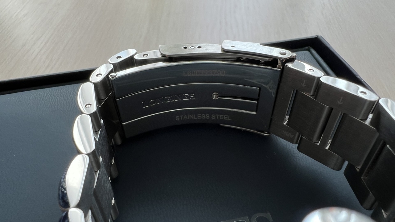 Браслет: стальной с замком для блокировки и дайверским удлинителем;